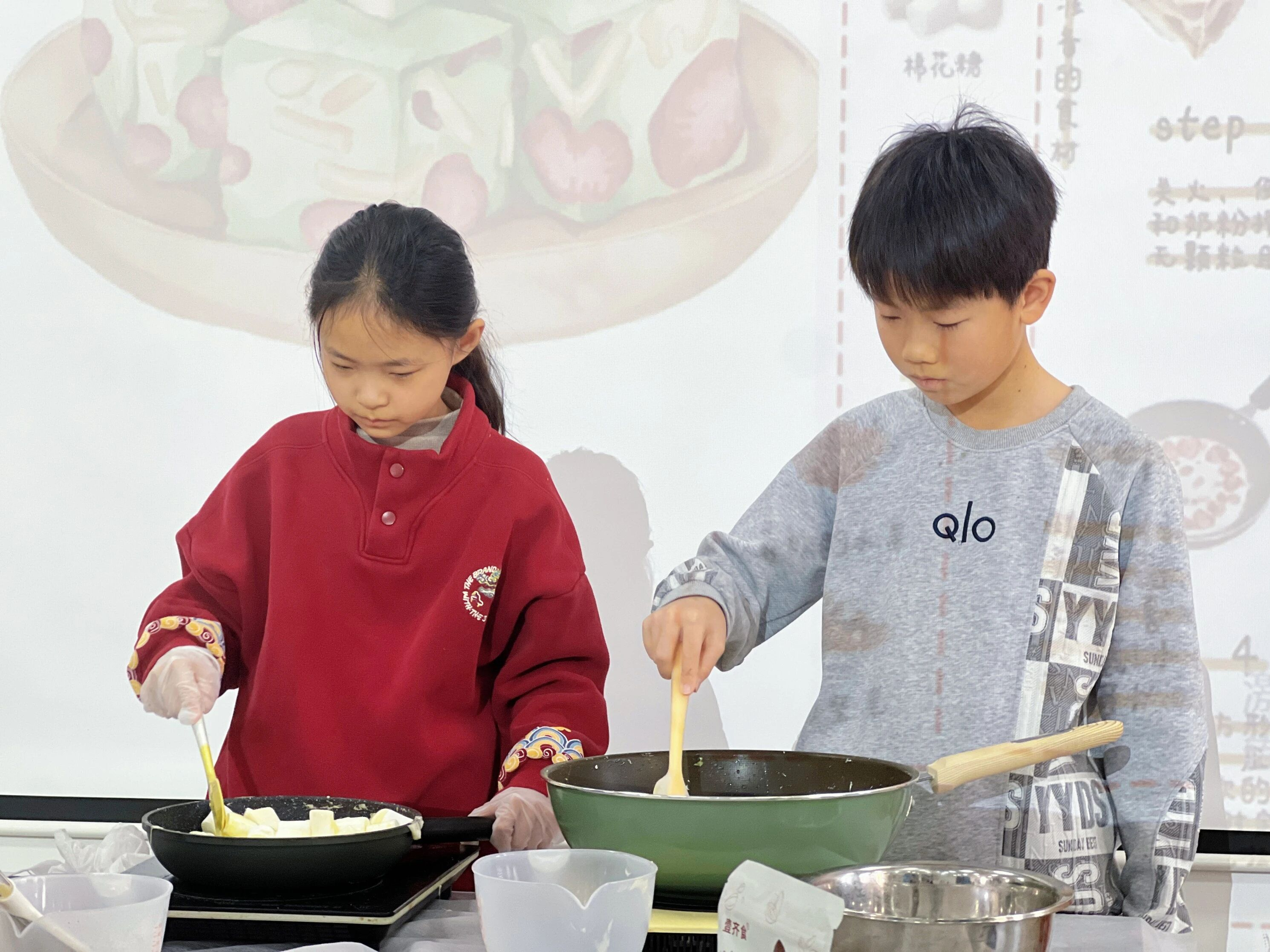 从称量食材到搅拌混合,从撒入果干坚果到压模定形,每一个步骤都充满新鲜感与小小的挑战。有的孩子小心控制着火候,生怕棉花糖熬煮过头;有的认真调配食材比例,追求口感的平衡;还有的早已跃跃欲试,想要创造属于自己独一无二的味道,定格寒假里的甜蜜瞬间。