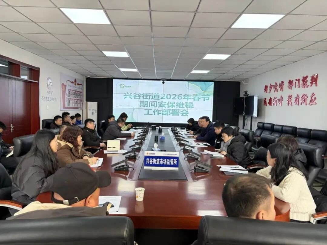 年味渐浓,平安为要。为切实保障辖区群众度过一个安全、祥和、有序的新春佳节,2月4日,兴谷街道组织召开2026年春节期间安保维稳工作部署会,全面压实安全责任,细化防控举措。街道武装部长赵集乐主持会议,综治办、执法队、派出所及各社区(村)负责综治工作人员参加会议。