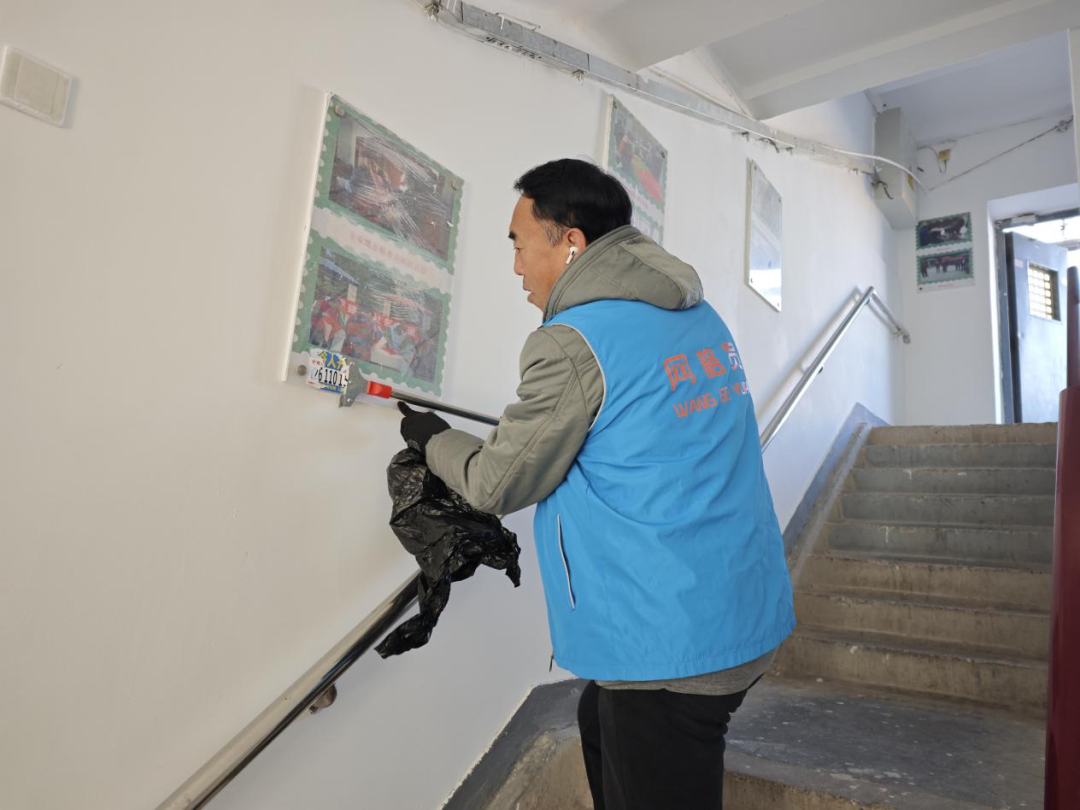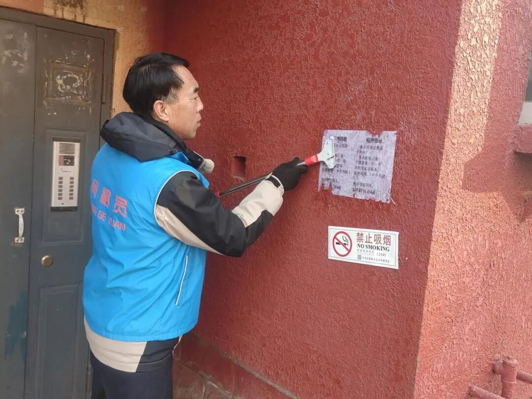 小广告不仅严重影响市容环境,破坏公共设施,更可能掺杂虚假、欺诈信息,损害居民合法权益,与文明城市创建要求格格不入。行动期间,社区工作人员携带专业工具,深入小区楼道、单元门、电表箱、主干道两侧及公共设施区域,对违规张贴、喷涂的广告进行全面清除。针对顽固污渍,采用除胶剂软化与铲除相结合;对地面及墙体喷涂广告,则使用同色涂料进行覆盖还原,最大限度恢复墙面与原貌。