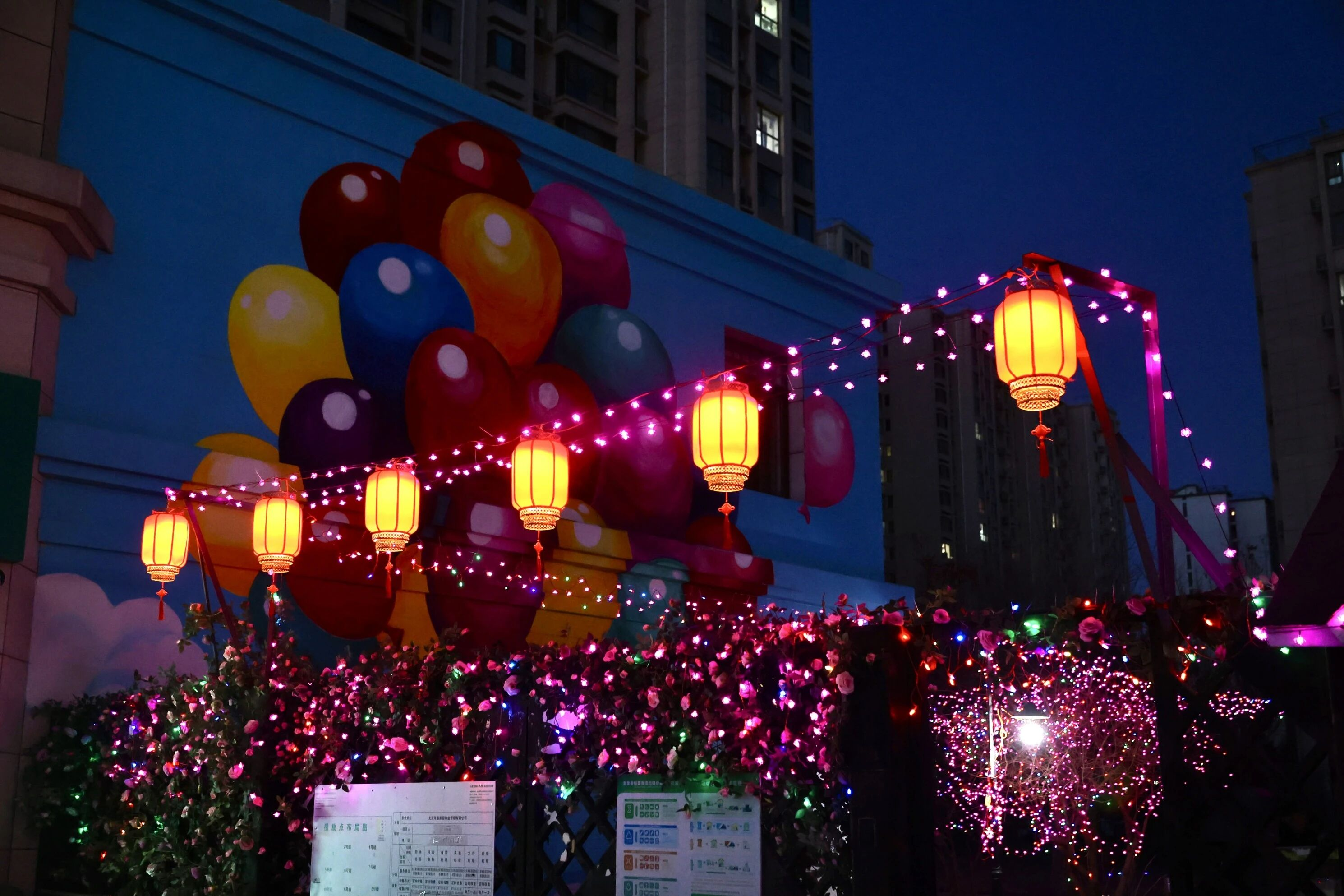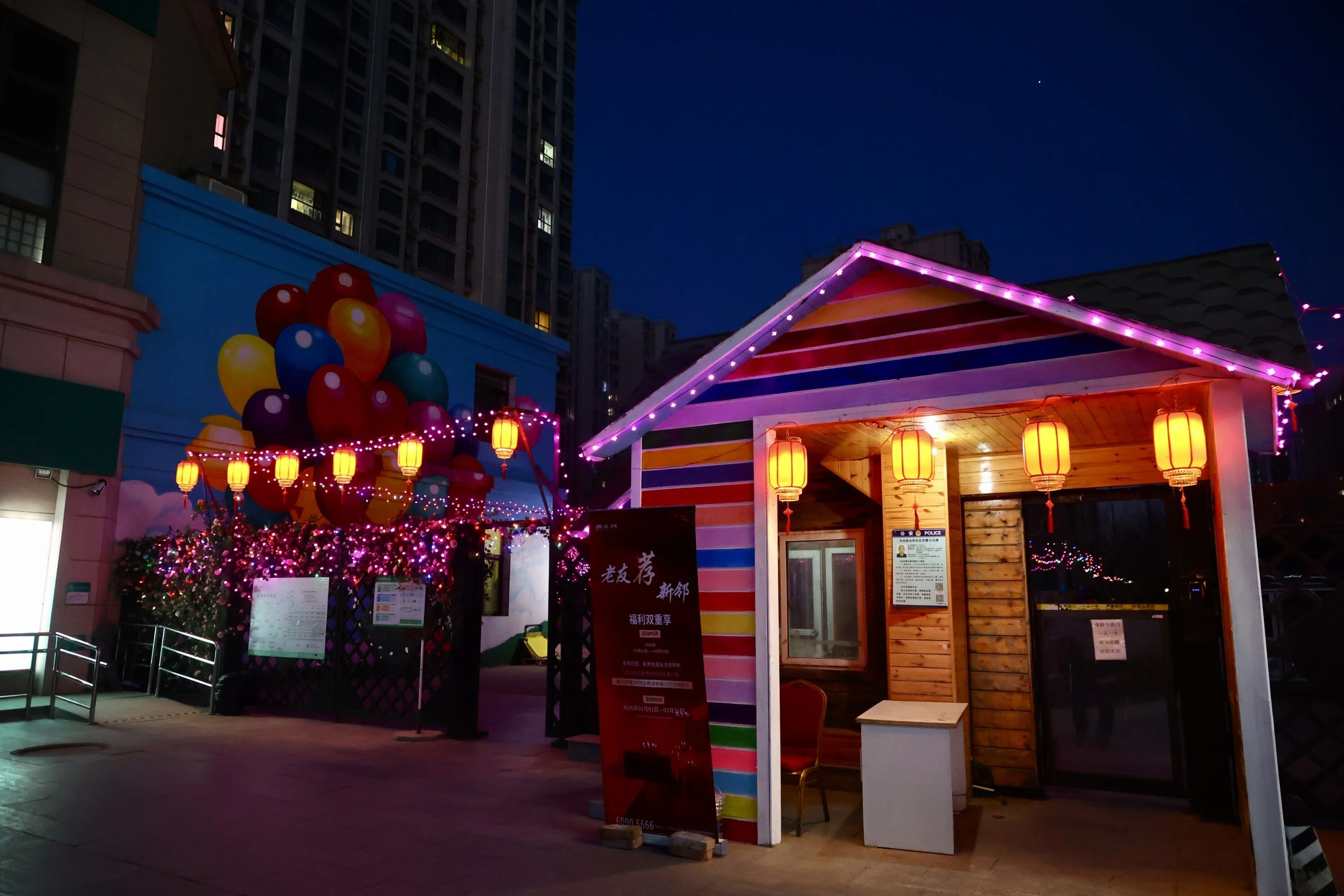 红灯高挂添喜色,彩灯流光迎新春。为营造欢乐祥和的节日氛围,马昌营镇紫贵佳苑社区携手物业,在小区内精心布设景观、悬挂灯笼彩灯,让辖区居民在浓郁喜庆的氛围中,用温馨明亮的景观迎接农历马年的到来。