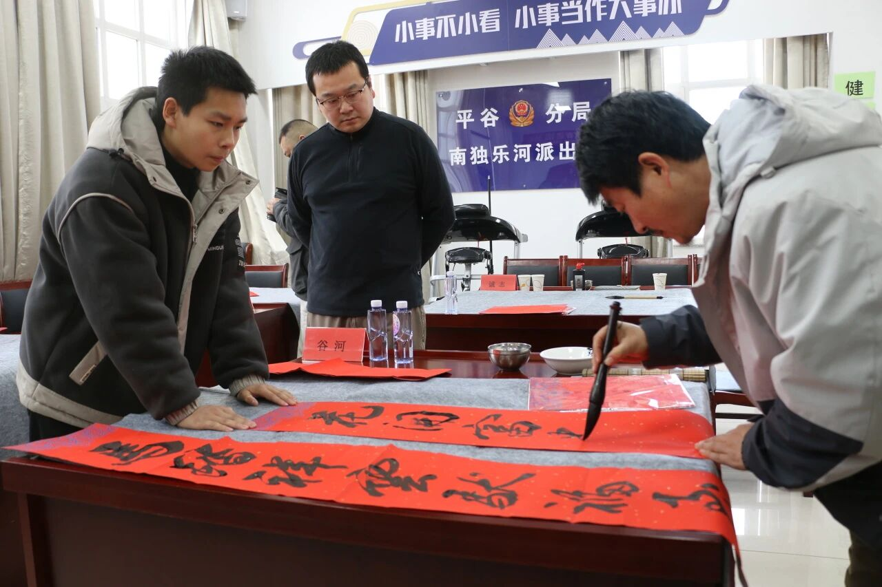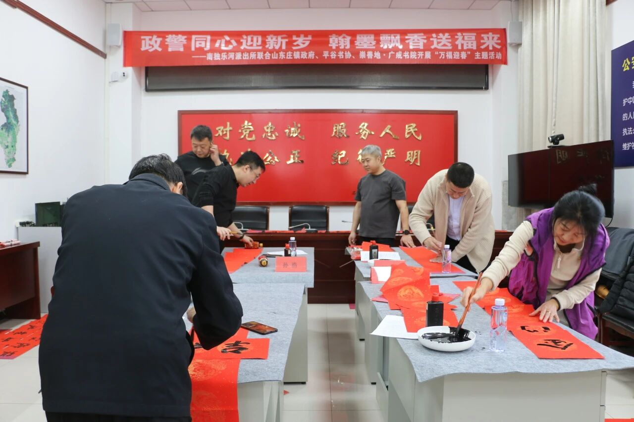 新春佳节来临之际,为表达对一线公安干警的崇高敬意与诚挚慰问,2月5日,山东庄镇文化服务中心联合平谷区书法家协会,到平谷公安分局南独乐河派出所开展“政警同心迎新岁 翰墨飘香送福来”文化活动,向常年坚守岗位、守护辖区平安的民警、辅警送上充满温情的新春文化礼物。