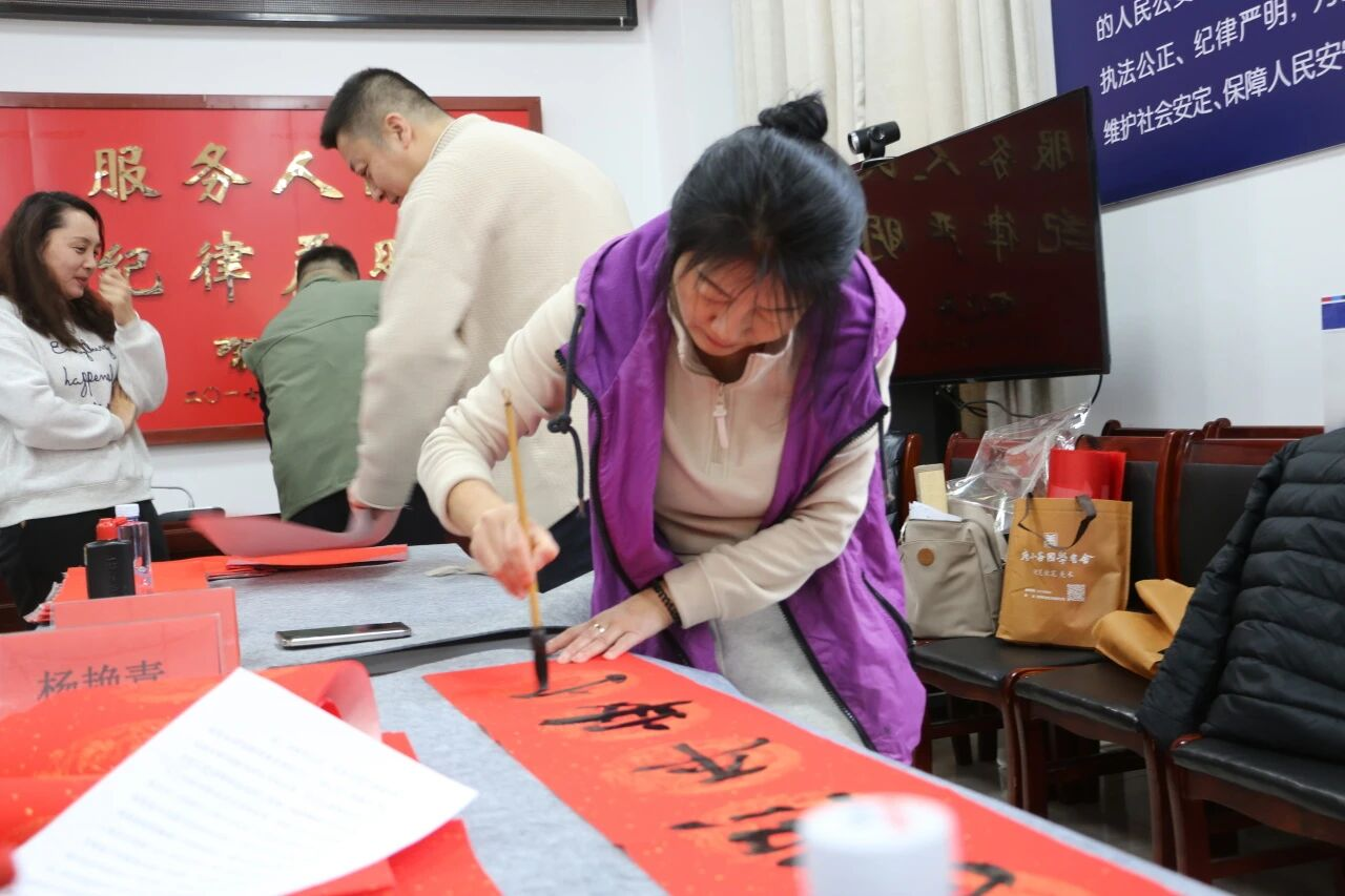 活动现场墨香沁人、情意融融。书法家们铺纸挥毫,专注书写,将真挚敬意融入笔端。一副副寓意吉祥的春联、一个个饱满有力的“福”字相继呈现,既传递出中华优秀传统文化的韵味,也凝聚着社会各界对公安干警无私奉献的深深感谢。