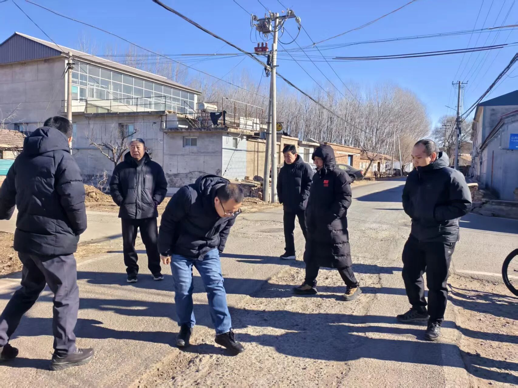 2 月 7 日, 镇党委副书记、镇长马春江带领城乡建设办、城乡建设服务中心深入南鲍路一线,实地查看道路通行现状、沿线周边环境及扬尘管控薄弱环节,现场勘察调研、查找问题根源,研究部署整改提升措施。