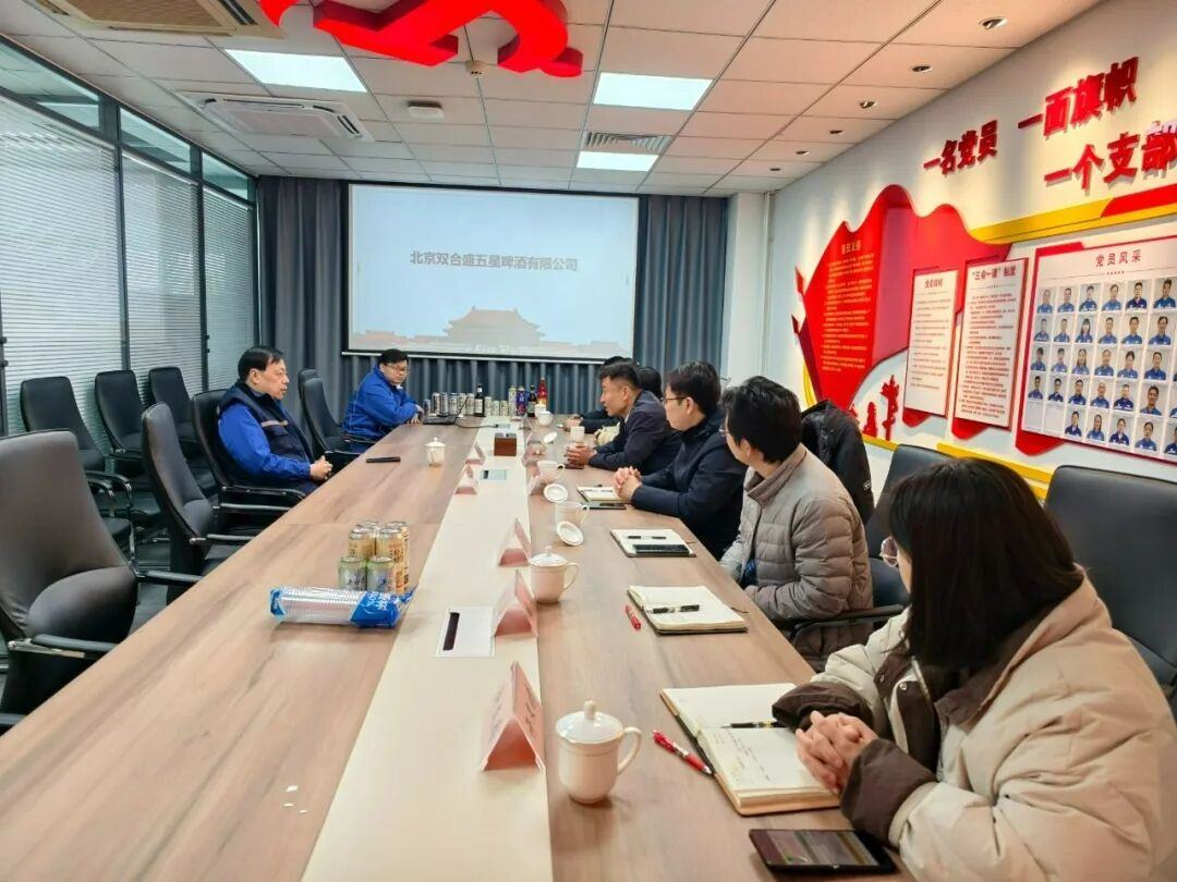 领导一行首先来到怀柔科学城北京双合盛五星啤酒有限公司,深入生产一线,观摩了生产线的高效运行,全面了解了公司在产品研发、产能布局等各个方面的建设成果,围绕城市更新工作探新路、出新招及合作共赢等方面进行深入交流座谈。