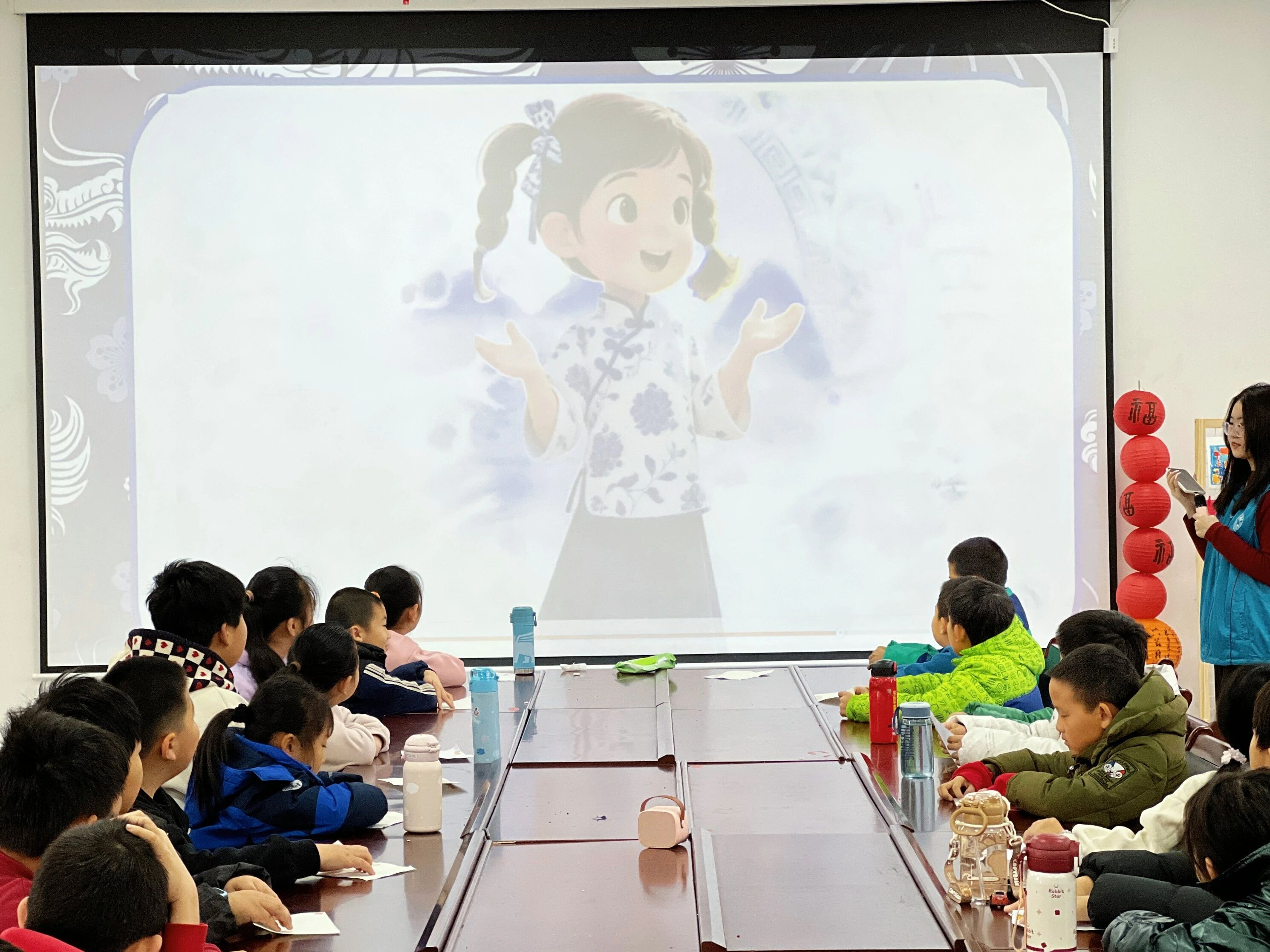 当桃乡的清风拂过课堂窗棂,一场跨越千年的青花之约悄然展开。本次课堂以生动的青花瓷科普开篇,工作人员用孩子们易懂的语言,从“青花”之名讲起,追溯其始于唐宋、盛于元明的千年历史,解读景德镇高岭土的奥秘,以及苏麻离青钴料经窑火淬炼,幻化成永不褪色湛蓝的工艺精髓,让孩子们知晓,每一件青花瓷都是古代匠人智慧与东方美学的结晶,轻松读懂非遗背后的文化密码。