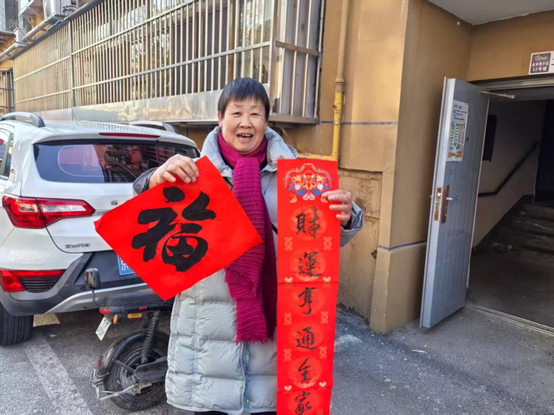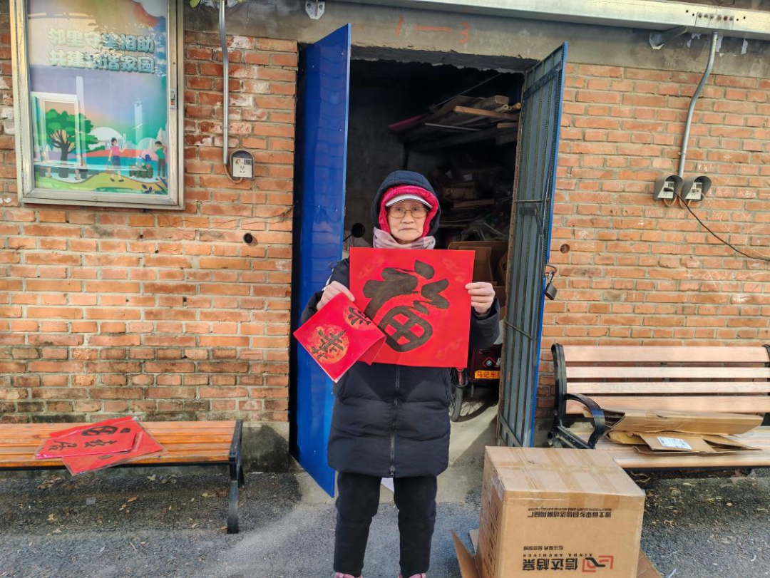 随后,社区工作人员与网格员分组行动,带着春联和“福”字走进小区楼院,重点走访高龄老人、特殊家庭等群体。他们不仅送上满载祝福的春节饰物,更悉心询问居民近况,叮嘱冬日用电用火安全,一句句贴心问候,让年味不仅洋溢在门前,更流淌在心间。收到祝福的居民们笑容洋溢,连连道谢,纷纷感叹:“社区总是这么暖心,这送来的不仅是福字,更是真情!”