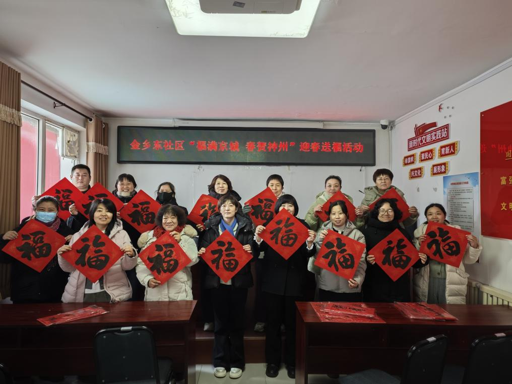岁启新章,年味渐浓。为传承中华优秀传统文化,营造喜庆祥和、邻里和睦的节日氛围,近日,金乡东社区组织开展“福满京城 春贺神州”迎春送福主题活动,以笔墨承载祝愿,以真情温暖人心,将浓浓的年味与诚挚的关怀送到每一位居民身边。
