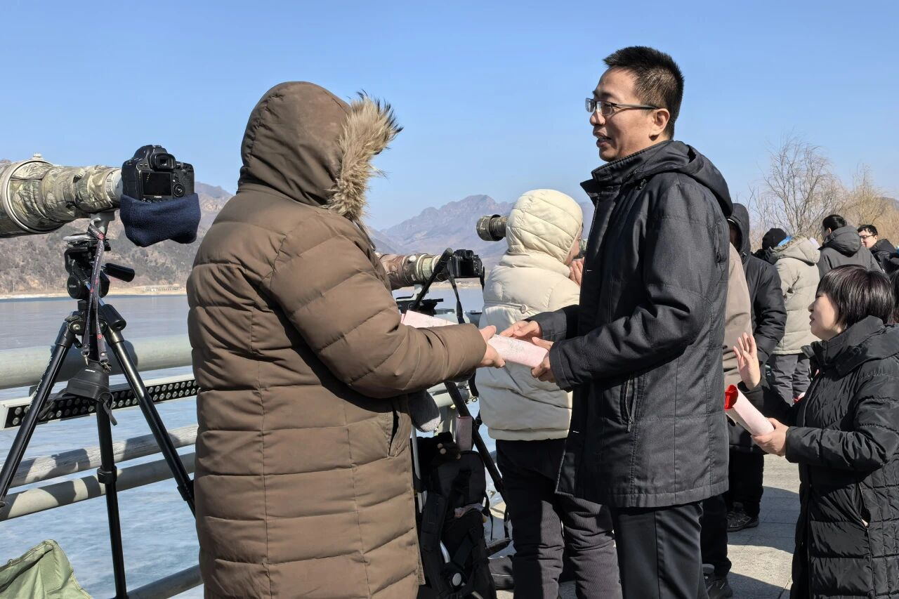 随后,镇党委书记刘彦涛和副镇长郝海鹏带队,将精心书写的200余副春联、福字逐一送到鸟友手中,亲手递上新春的问候与关怀。接过红彤彤的春联和福字,鸟友们脸上洋溢着幸福的笑容,纷纷表示:“这春联贴在家里,不仅添了年味儿,更暖了心窝子!”