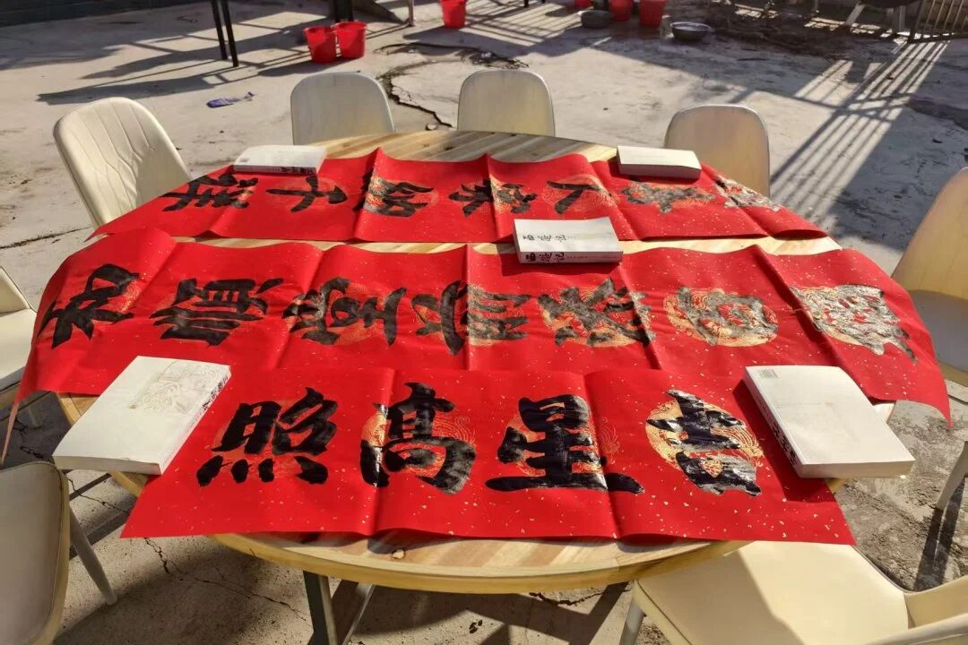 另一边,书法大家现场赠春联、送福字的区域,早已排起了长长的队伍。第一书记与书法爱好者们凝神挥毫、笔走龙蛇,一笔一划间,一幅幅笔力遒劲、寓意吉祥的春联,一个个喜庆红火、饱含祝福的“福”字跃然纸上,“马到成功添吉庆,春回大地纳安康”“福满家园添瑞气,喜盈乡村庆丰年”,每一幅作品都承载着对村民们新年的美好祝愿,村民们接过春联和福字,脸上洋溢着幸福的笑容,满心欢喜地期盼着新年的到来。