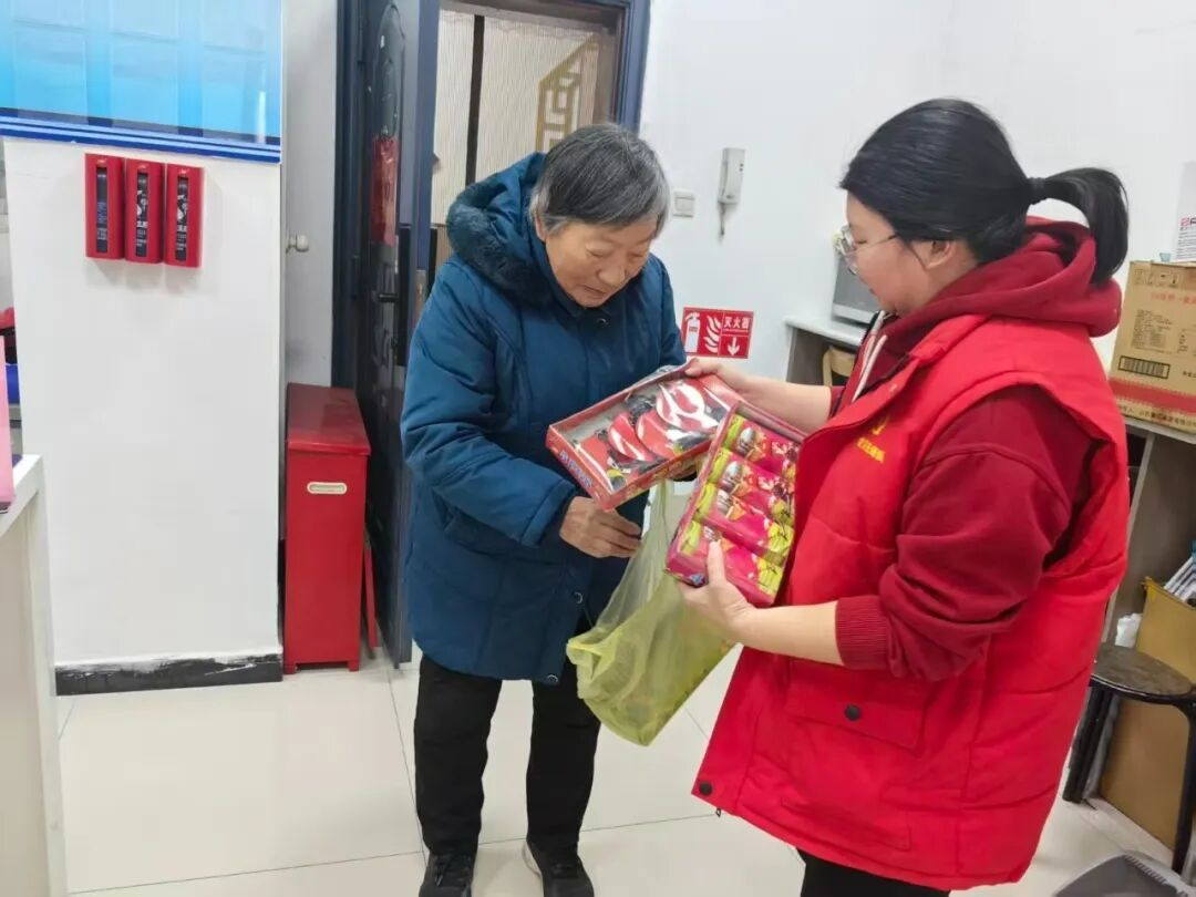 向阳社区网格员通过线上宣传、线下发放倡议书等方式,采取讲解禁放规定、演示消防应急知识等形式,向居民普及烟花爆竹危害、消防安全常识及春节安全注意事项。不少居民主动加入平安宣传志愿者队伍,承诺向家人邻里传递文明过节理念。