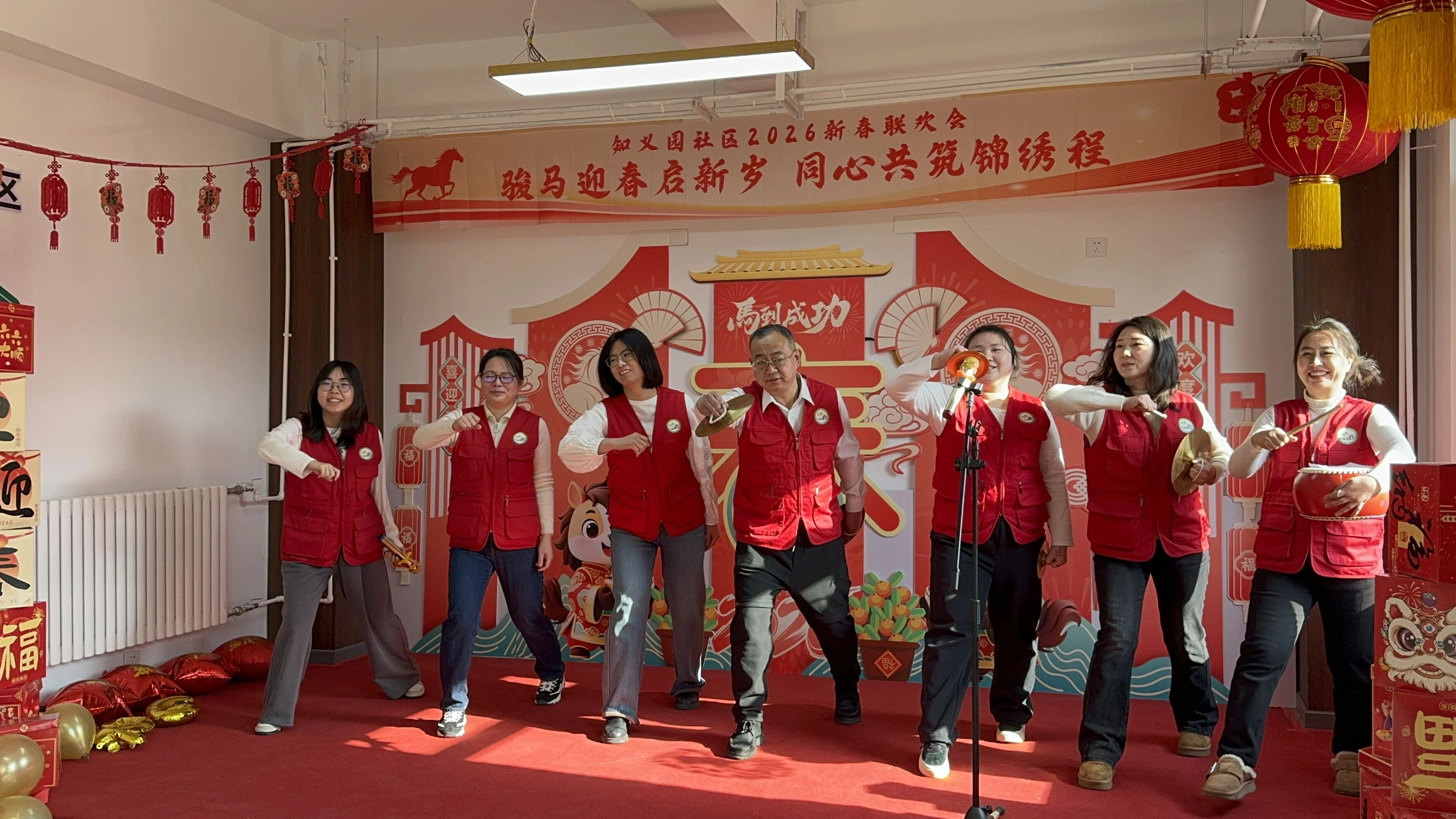 金蛇辞旧岁,骏马迎新春。为营造喜庆祥和的节日氛围,丰富居民精神文化生活,2月10日,知义园社区举办“骏马迎春启新岁 同心共筑锦绣程”新春联欢活动。社区居民、工作人员欢聚一堂,以文艺展演、团圆饺子宴的形式,共话邻里情、同贺中国年。