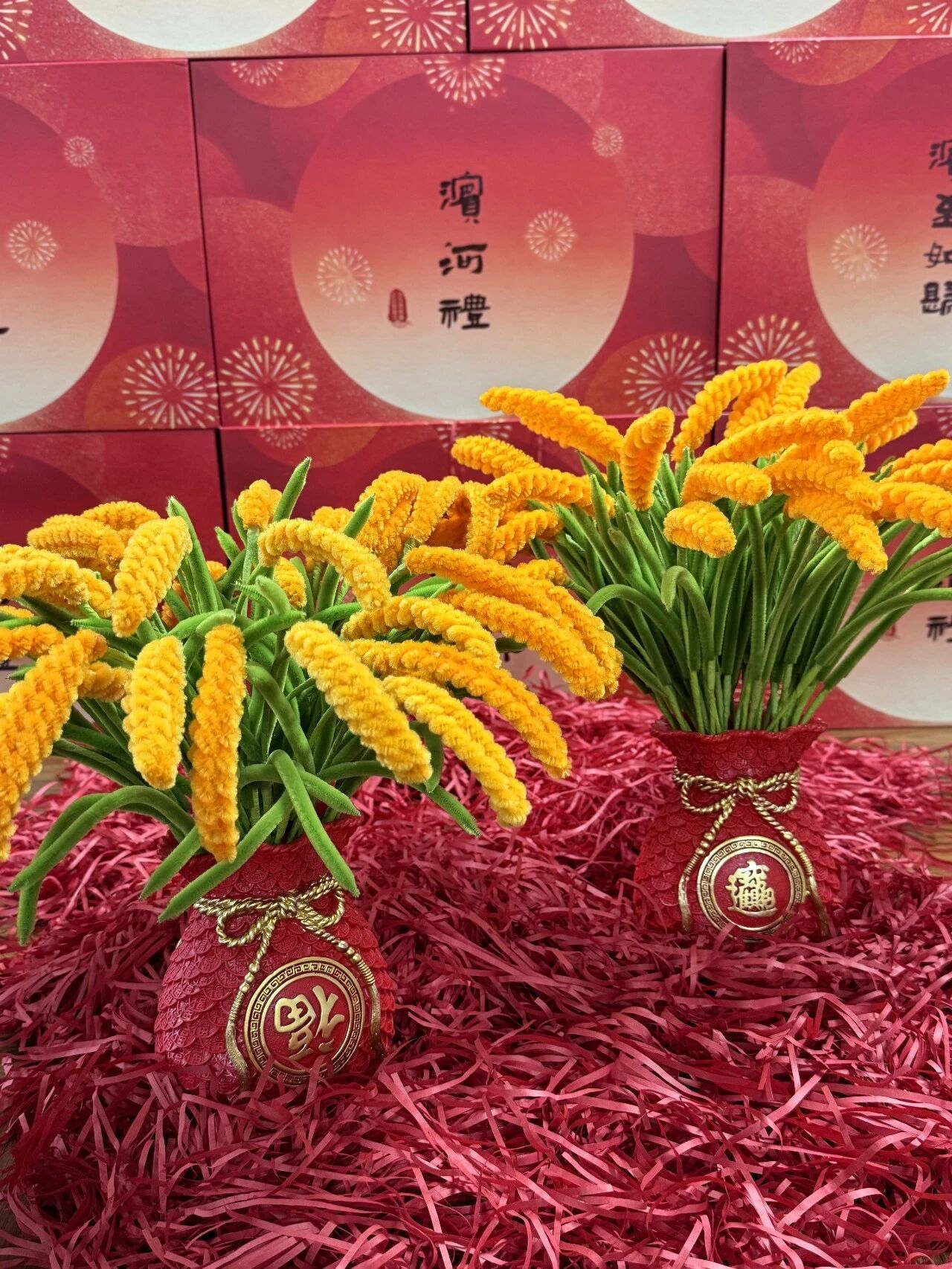 细细缠绕的扭扭棒化作丰盈麦穗,颗粒饱满、形态逼真,承载着 “穗穗平安” 的岁岁期盼;