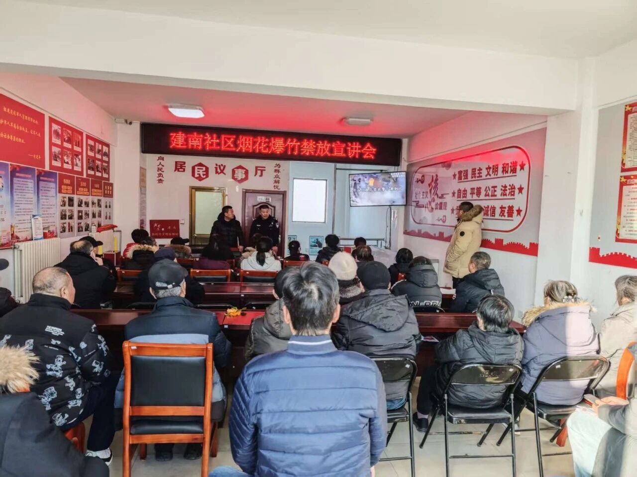 为让禁放政策家喻户晓、深入人心,建南社区开展多轮次、全方位的禁放宣讲活动,持续扩大宣传覆盖面与影响力。社区组织工作人员、网格员、社区民警组成宣传小队,多次开展禁放行动移风易俗宣讲会,并在小区出入口、单元楼道等醒目位置开展宣传,用通俗易懂的语言和真实案例视频向居民讲解烟花爆竹燃放的安全隐患、环保危害及禁放政策,引导居民自觉摒弃燃放烟花爆竹的陋习。同时,结合“敲门行动”,开展登门入户宣讲活动,工作人员逐户走访辖区居民,发放《致建南社区居民关于烟花爆竹禁放的一封信》,与居民面对面交流,耐心解答居民疑问,结合周边燃放烟花爆竹的安全事故案例,以案释法、以情说理,提醒居民春节期间不购买、不储存、不燃放烟花爆竹。