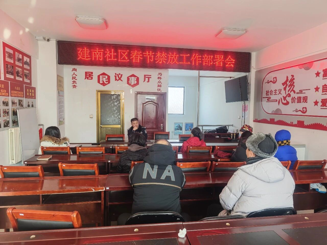 为确保禁放工作落地落细、取得实效,建南社区居委会坚持“早部署、早安排、早行动”,先后多次召开烟花爆竹禁放工作部署会,以社区实际情况制定工作方案。并构建“社区干部包片、网格员包户、党员代表联户”的三级联动体系,将禁放工作责任层层分解、落实到人,明确各岗位职责分工、工作重点及时间节点。同时对往年的禁放工作展开复盘,梳理存在的问题与不足,优化工作举措,为春节前禁放工作有序开展奠定坚实基础。
