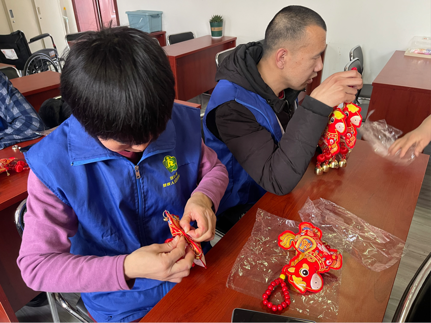 旭日职康站以“巧手迎新春温情满职康”为主题,开展新春挂饰制作活动,让残疾学员们在手工创作中感受传统年俗魅力,为新春增添喜庆氛围。工作人员结合学员身体特点,提前精心筹备小马主题挂饰材料,简化制作步骤,规划分组帮扶方案,确保每位学员都能安全、顺畅参与活动。