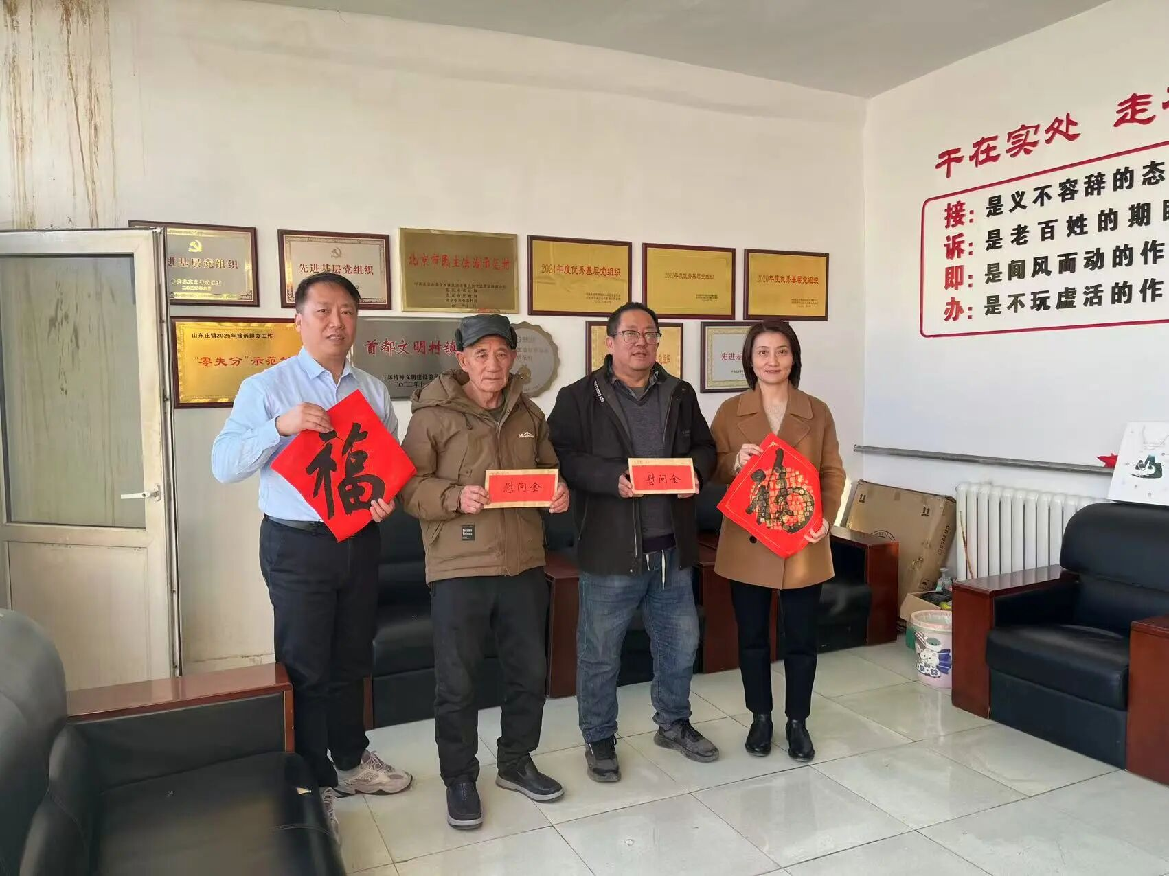 在新春佳节到来之际,山东庄镇主要领导带队,分别看望慰问部分困难党员和离任村干部,为他们送去党和政府的关怀与温暖,并致以新年问候和美好祝愿。