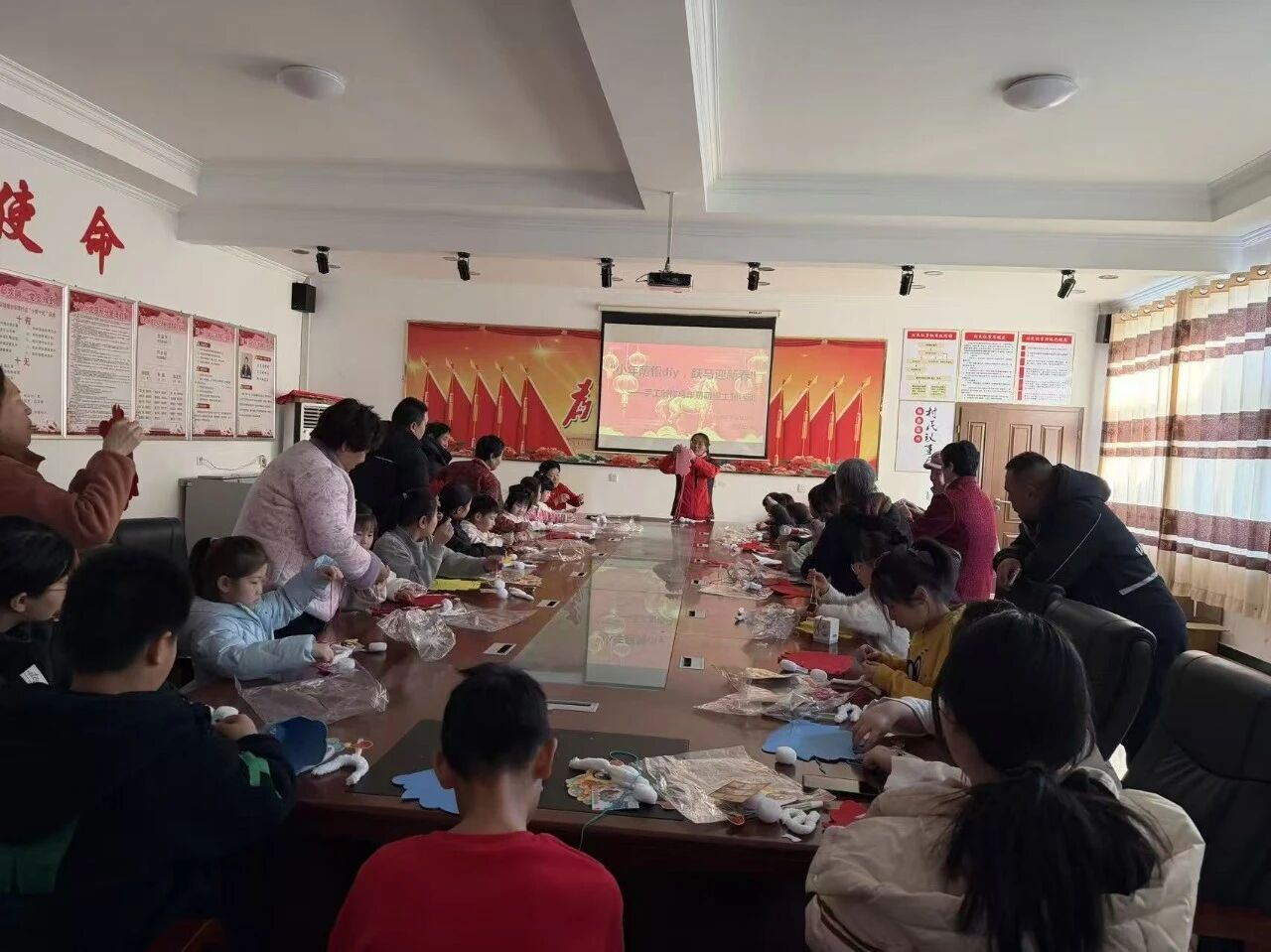 当寒假遇见年俗,文明实践站变身“非遗小课堂”。礼义园社区组织青少年制作马年生肖灯笼,裁剪、折叠、粘贴间,一盏盏灵动俏皮的“小马灯”点亮新春愿景。马各庄村开展“剪纸纳福”主题活动,孩子们巧手翻飞,红纸化作“春”字、中国结、梅花窗花,让年味在指尖流淌。杨各庄村童伴之家推出“萌帽DIY 跃马迎新春”亲子活动,一顶顶创意马年萌帽,既藏着童趣想象,更承载“马到成功”的吉祥寓意。