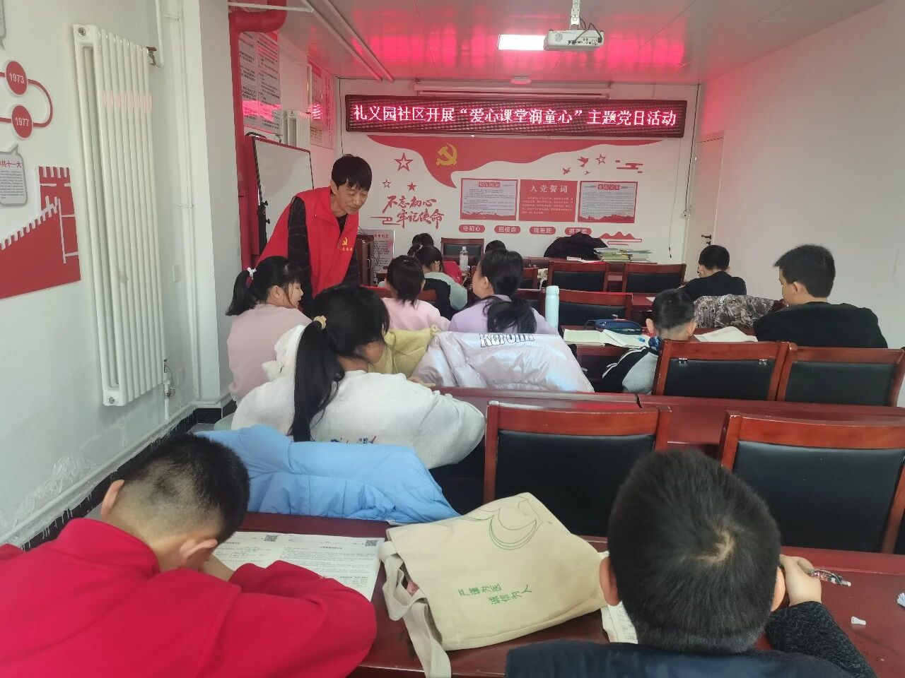 寒假“宅”家不虚度,文明实践来“带娃”。礼义园社区“童乐相伴”寒假公益托管班持续“营业”,邀请辖区党员、老师为孩子们辅导作业、答疑解惑。姜老师主动放弃休息,化身篮球教练,手把手教孩子们运球、投篮,用汗水浇灌运动热情。