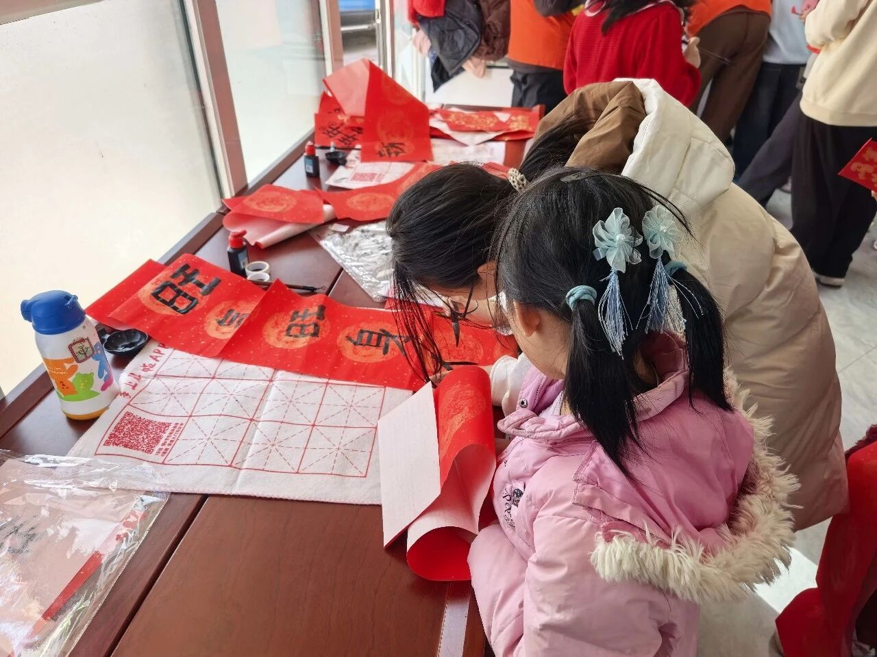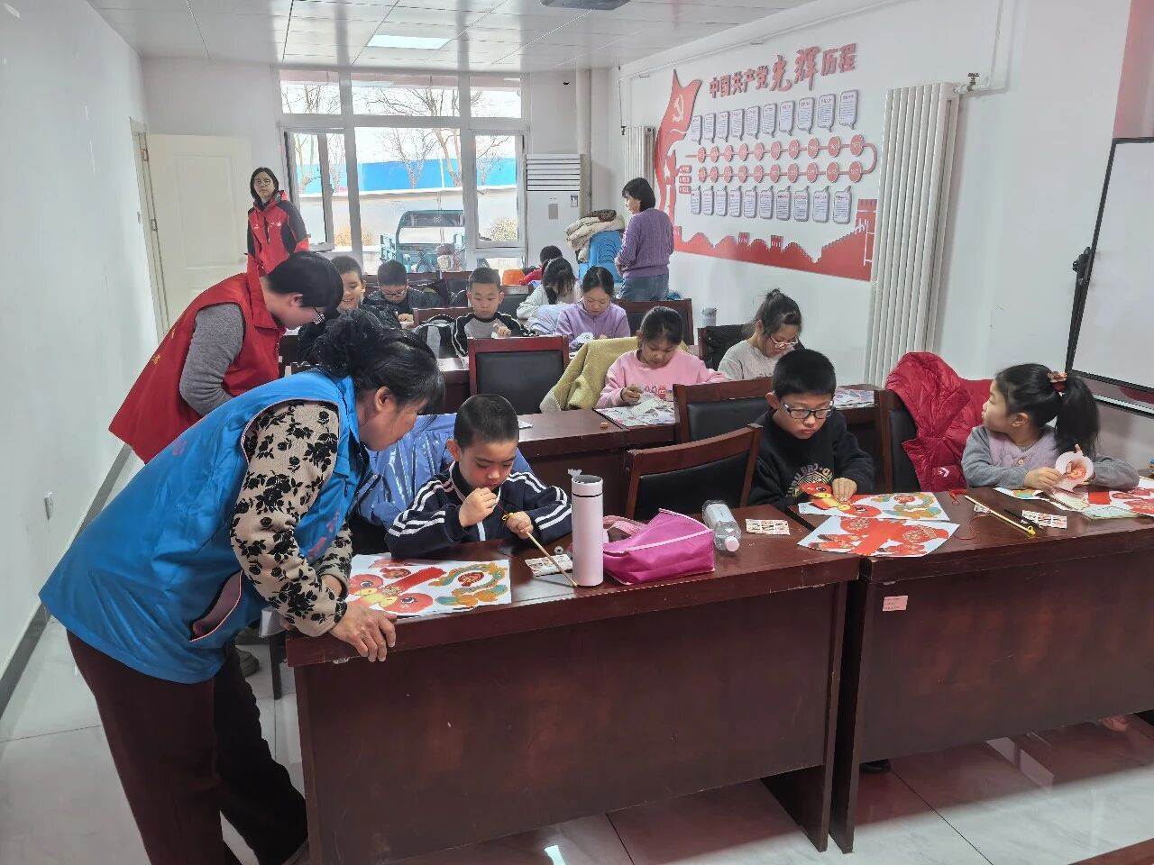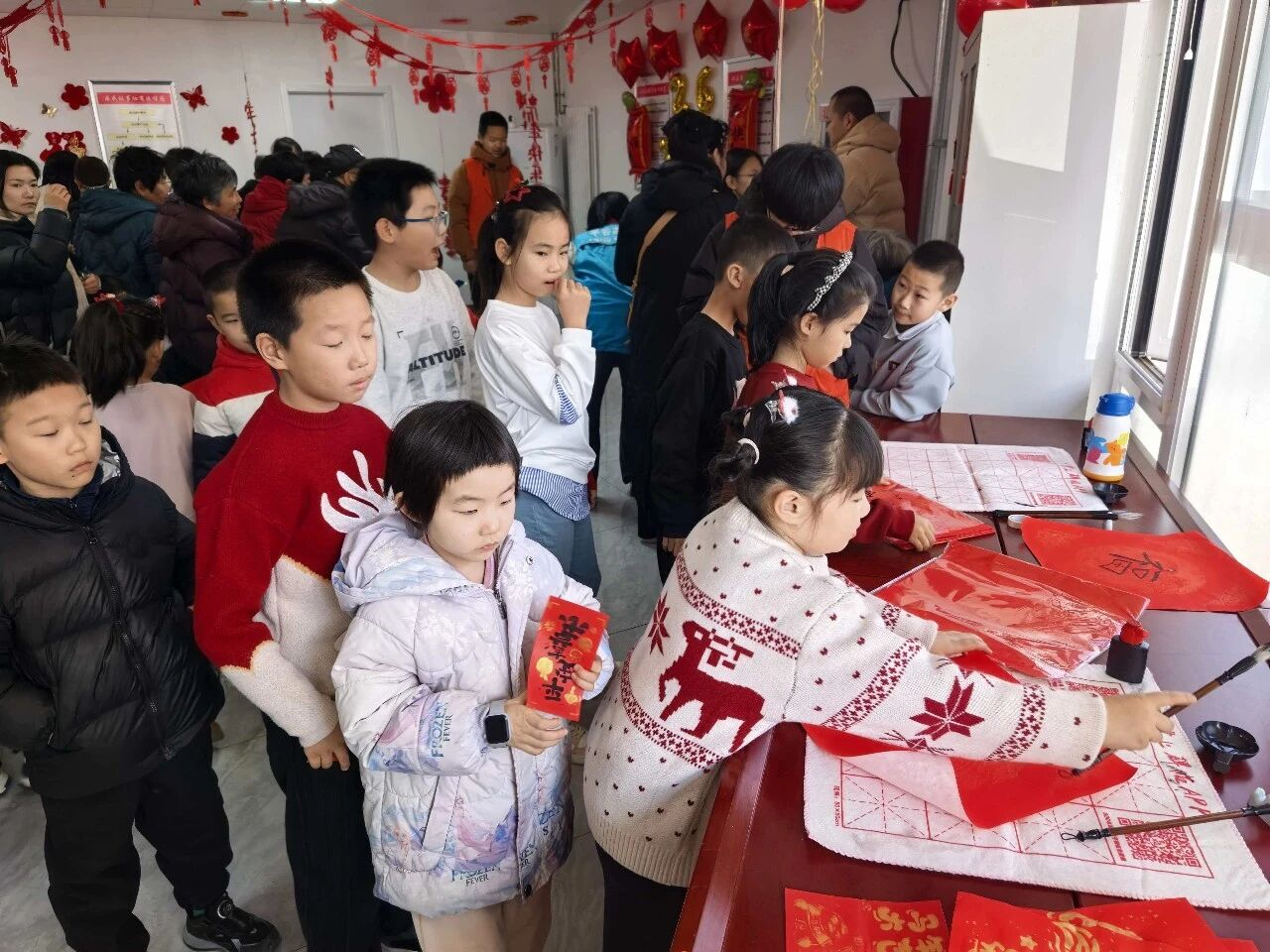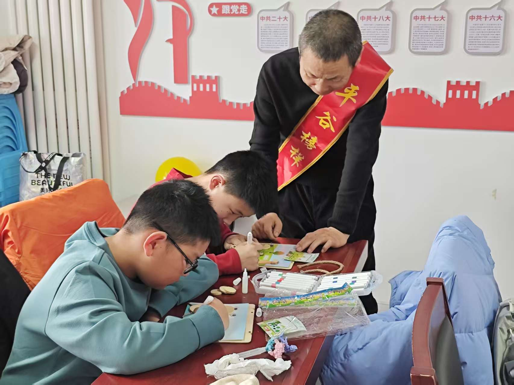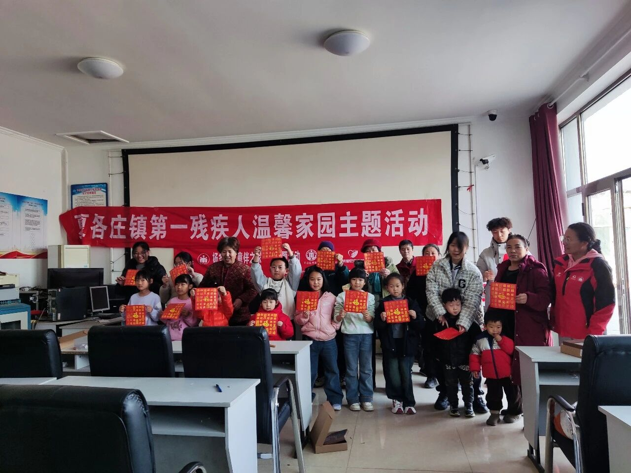 杨各庄村童伴之家联合镇残疾人温馨家园,开展“童心绘福 情暖残友”手绘百福图活动。孩子们与残疾朋友结对创作,你描轮廓、我填色彩,一幅幅“福”字作品凝聚童真与深情,也在孩子心中播下尊重、理解与关爱的种子。