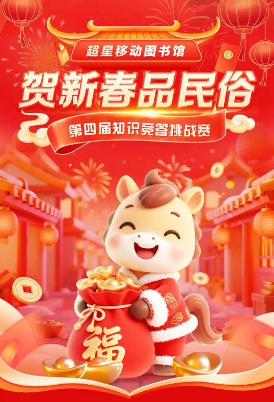线上活动同样精彩纷呈、亮点十足,解锁了云端书香新玩法,让年味与书香直达每一位读者身边。“贺新春·品民俗”知识竞答挑战赛、文脉驰骋答题抢红包、马年主题作品展、“藏在古诗词里的中国年”听音频答题及春节成语主题展轮番上线、精彩联动,内容涵盖民俗文化、马年底蕴、古典诗词、经典书籍等多个领域,不仅内容丰富、形式新颖,参与起来也十分便捷。读者只需关注平谷区图书馆微信公众号,即可轻松参与活动,在答题闯关中学习知识、赢取惊喜奖品,在云端赏佳作、品文脉、悟经典,沉浸式感受新春文化的独特魅力,让这个春节更具书香韵味与文化内涵。