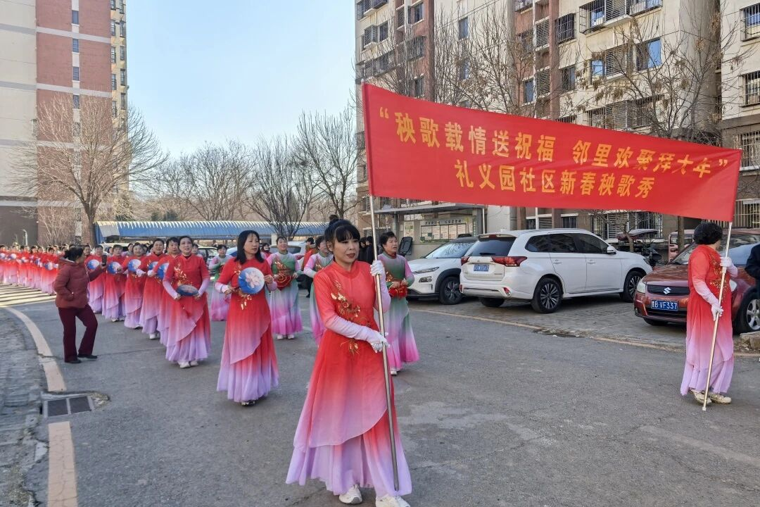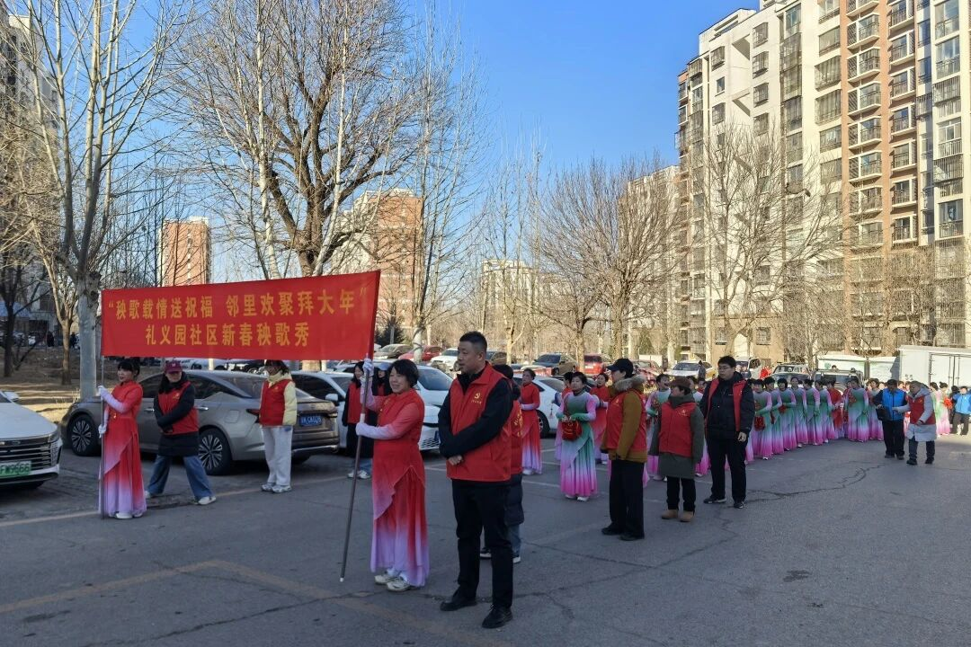 为弘扬传统民俗文化,营造喜庆祥和的新春氛围,丰富居民精神文化生活,正月初一上午,礼义园社区特邀夏各庄镇秧歌队,开展“秧歌载情送祝福 邻里欢聚拜大年”新春秧歌秀活动。社区书记带领全体工作人员全程参与,与秧歌队共同为居民送上新春美好祝福。