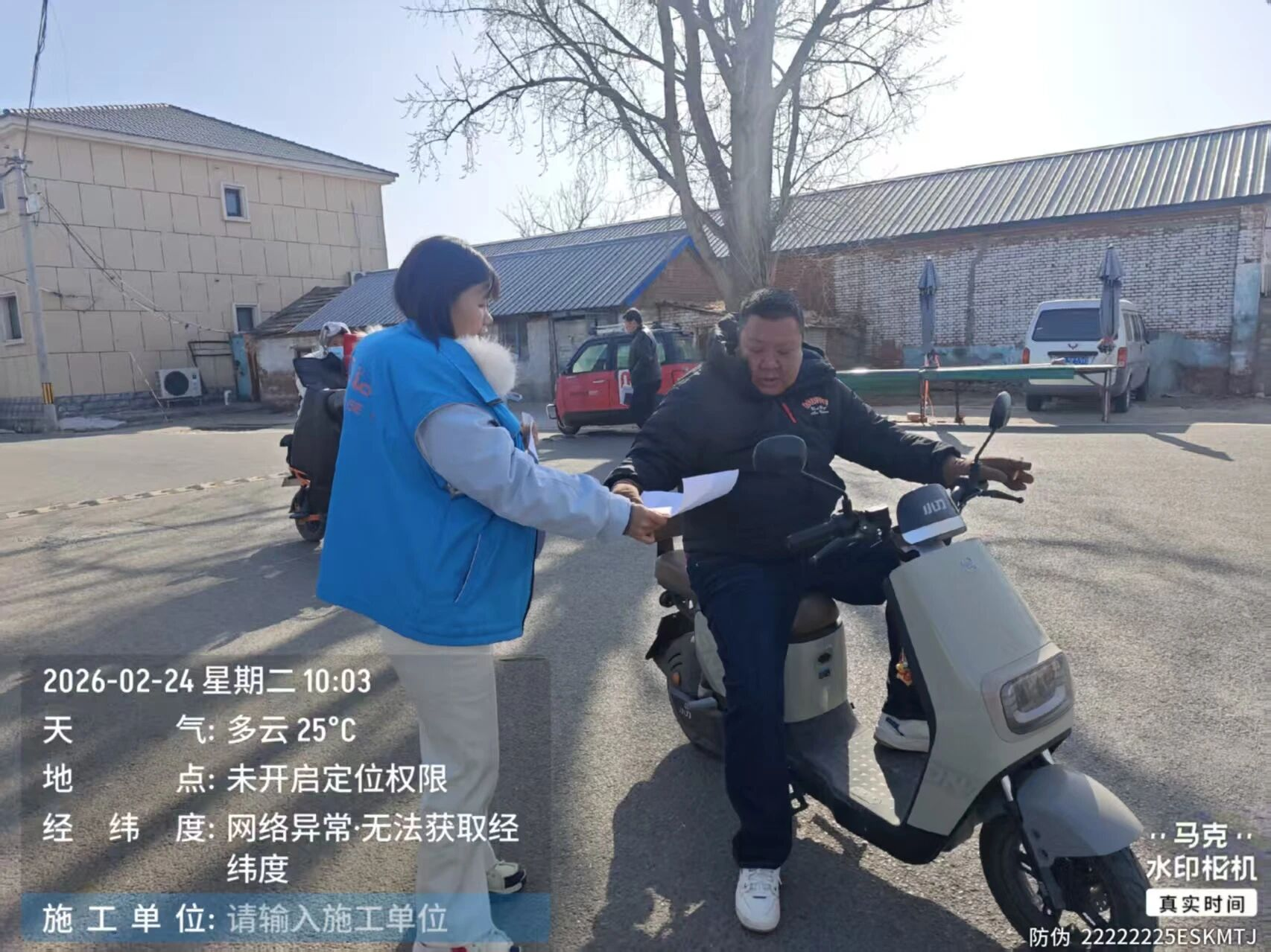网格员们用通俗易懂的语言向骑行人员讲解未佩戴安全头盔的安全隐患,同时,结合近期典型交通事故案例,解析骑行事故中头盔对保护颅脑的关键作用,让群众直观认识到“小头盔”背后的“大安全”。