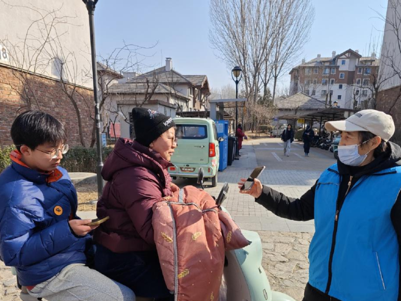 各村居网格员化身“安全宣传员”,开展全方位宣传。线下,深入居民家中、停放点发放资料、讲解事故案例,普及头盔佩戴、不违规载人等安全知识,提醒老年群体摒弃陋习;线上,依托网格群推送安全提示、短视频及海报,实现“线上+线下”同频发力,强化安全理念。
