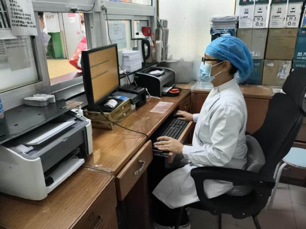 屈秀琼在挂号处岗位筑牢服务第一道防线。除夕就诊群众虽少,但需求更急、心情更切。她始终面带微笑,耐心答疑解惑,快速准确办理挂号业务,用温暖服务缓解患者家属的焦虑。从晨光微熹到夜幕降临,她坚守窗口,将便捷与安心传递给每一位就诊群众。