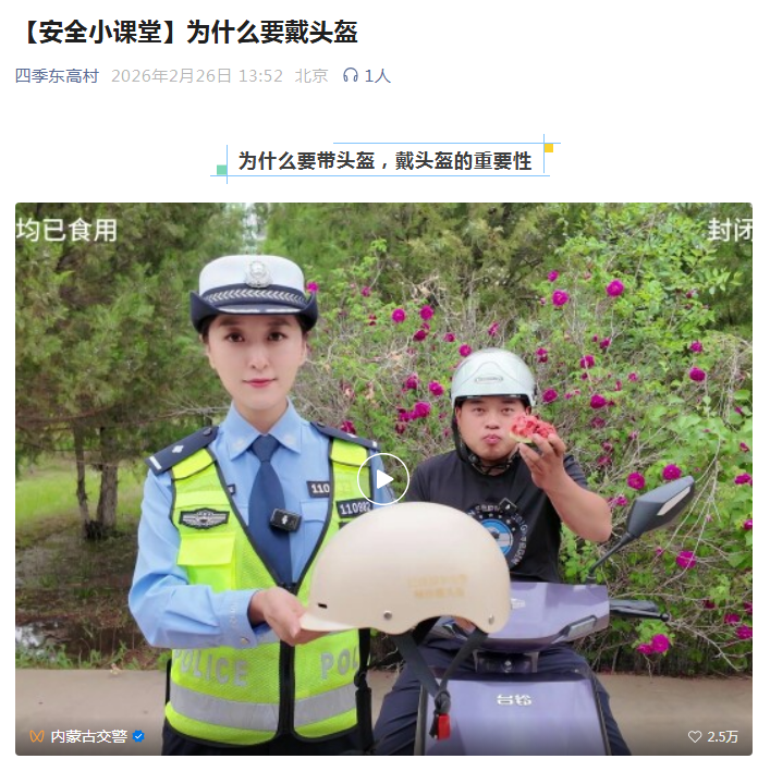 线上依托微信公众号持续推送安全知识,各村村民微信群广泛转发宣传内容;线下利用各村大喇叭循环播放宣传提示。同时组织网格员开展 “敲门行动”,深入村民家中面对面讲解佩戴头盔的重要性,打通宣传“最后一米”。目前,群众对佩戴安全头盔的知晓率、重视率显著提高。