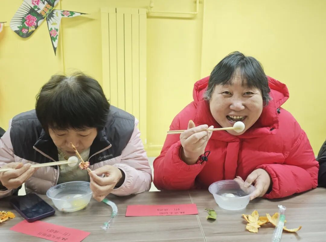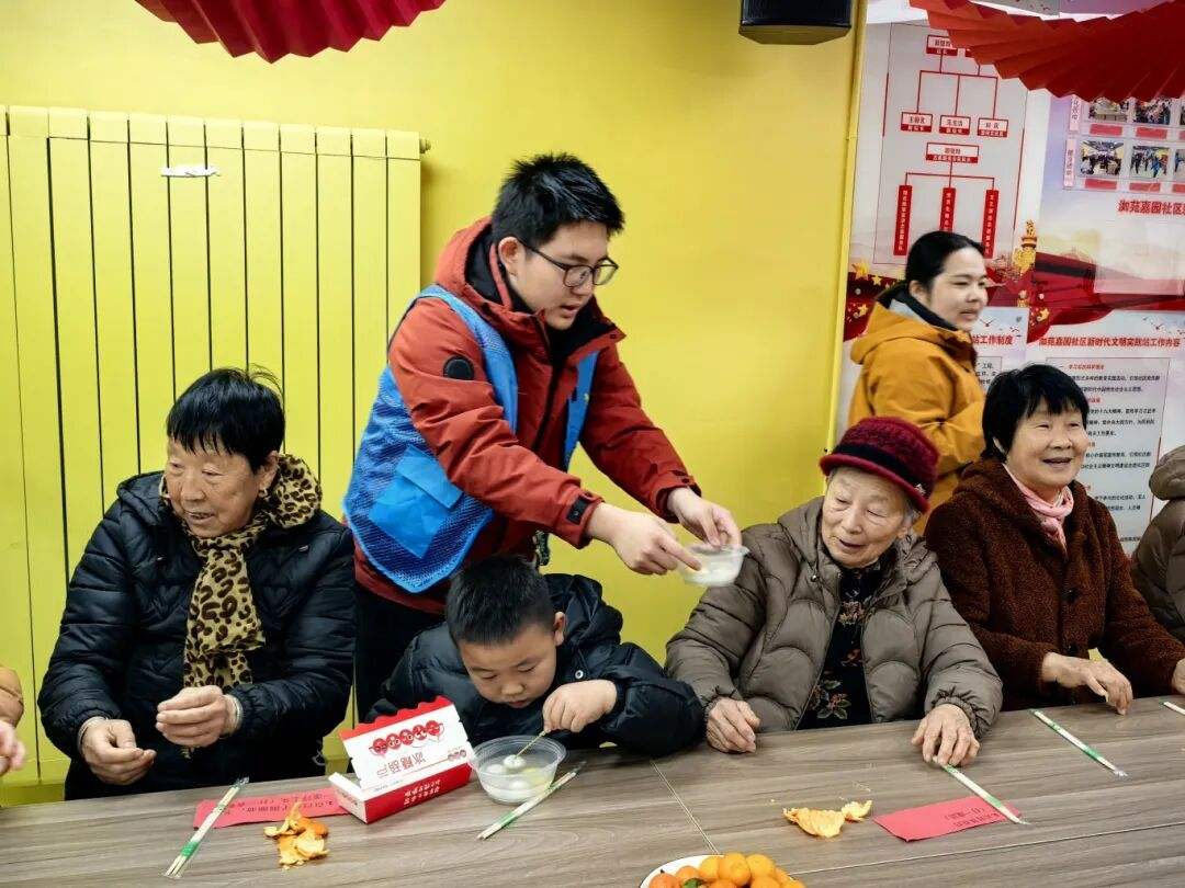 猜灯谜环节结束后,活动进入温馨的敬老时刻。青少年志愿者们将一碗碗刚煮好、热气腾腾的汤圆,双手端到每位老人面前。老人们接过汤圆,细细品尝,脸上洋溢着幸福的笑容。不少老人感动地表示,这是他们今年吃到的第一碗热汤圆,心里既温暖又甜蜜。