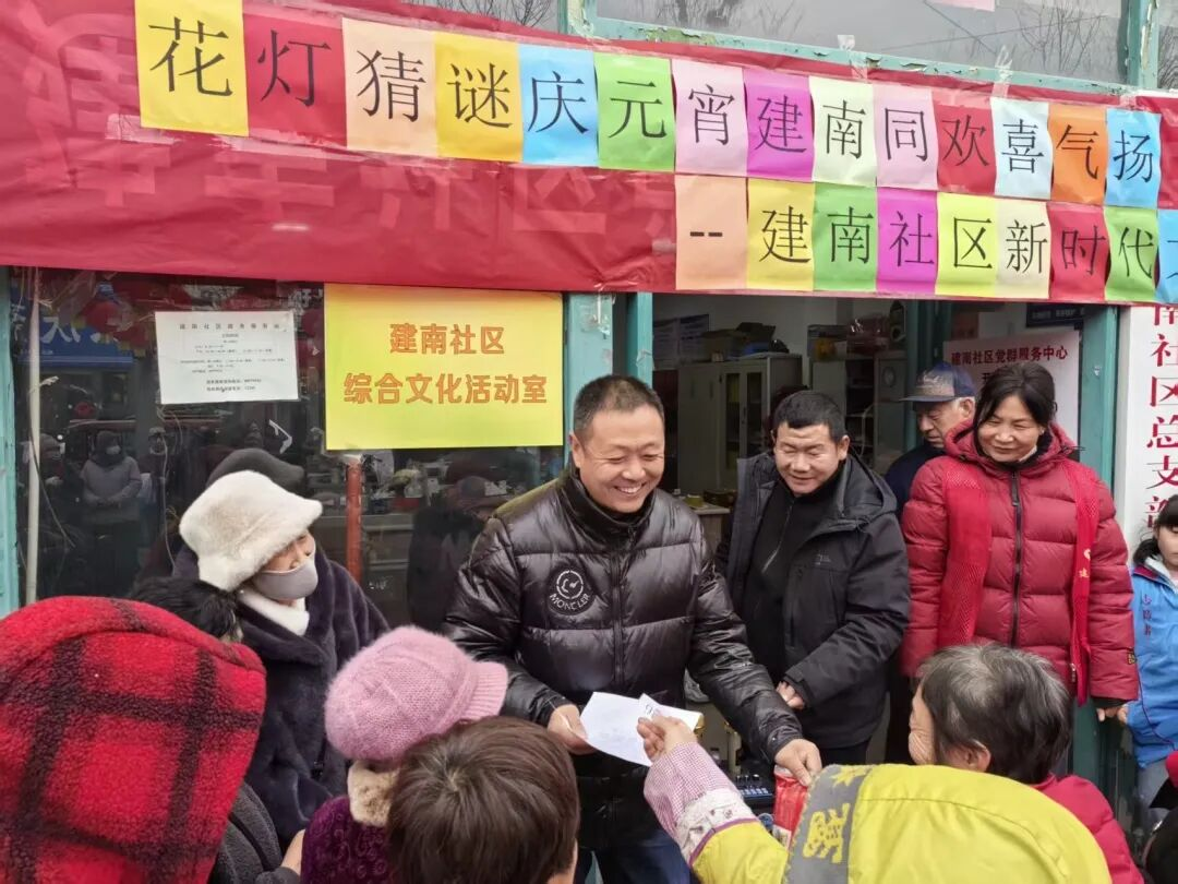 “花灯猜谜庆元宵”活动中,建南社区百余名居民齐聚一堂。现场红灯笼摇曳,谜面随风飘舞,大家踊跃猜谜,欢声笑语不断。活动中段穿插的有奖问答环节成为一大亮点,“遇网络诈骗怎么办”“交通规则守什么”等接地气的题目,点燃了居民的参与热情。工作人员实时答疑解惑,让知识入脑入心。此次活动以民俗为媒,传文明之声,护平安之盾,既让居民感受了节日的喜悦,拉近了邻里距离,也为建设和谐社区注入了精神动力。