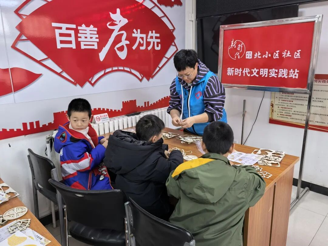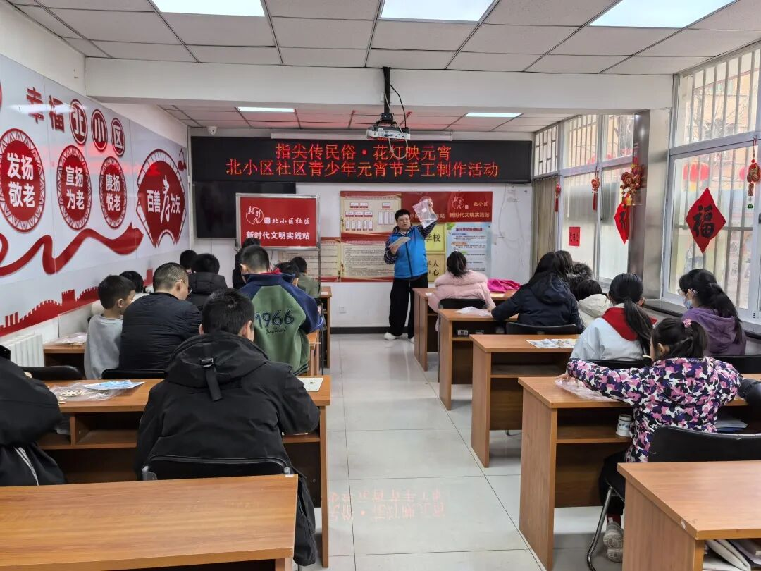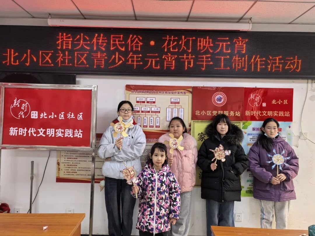 北小区社区青少年旋转花灯手工制作活动现场暖意融融,社区工作人员先是为孩子们生动讲解元宵节赏花灯的传统民俗,随后细致示范旋转花灯的拼接技巧与核心原理,耐心解答孩子们的疑问。制作过程中,孩子们全程自主动手、专注创作,遇到拼接难题时,主动相互请教、默契协作解决,现场既有埋头创作的专注身影,也有分享技巧的欢声笑语。活动尾声,孩子们手持自己亲手制作的旋转花灯,纷纷展示成果、合影留念,脸上洋溢着满满的成就感与喜悦。