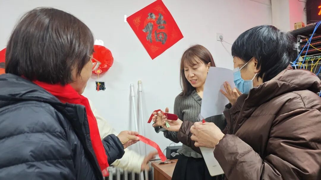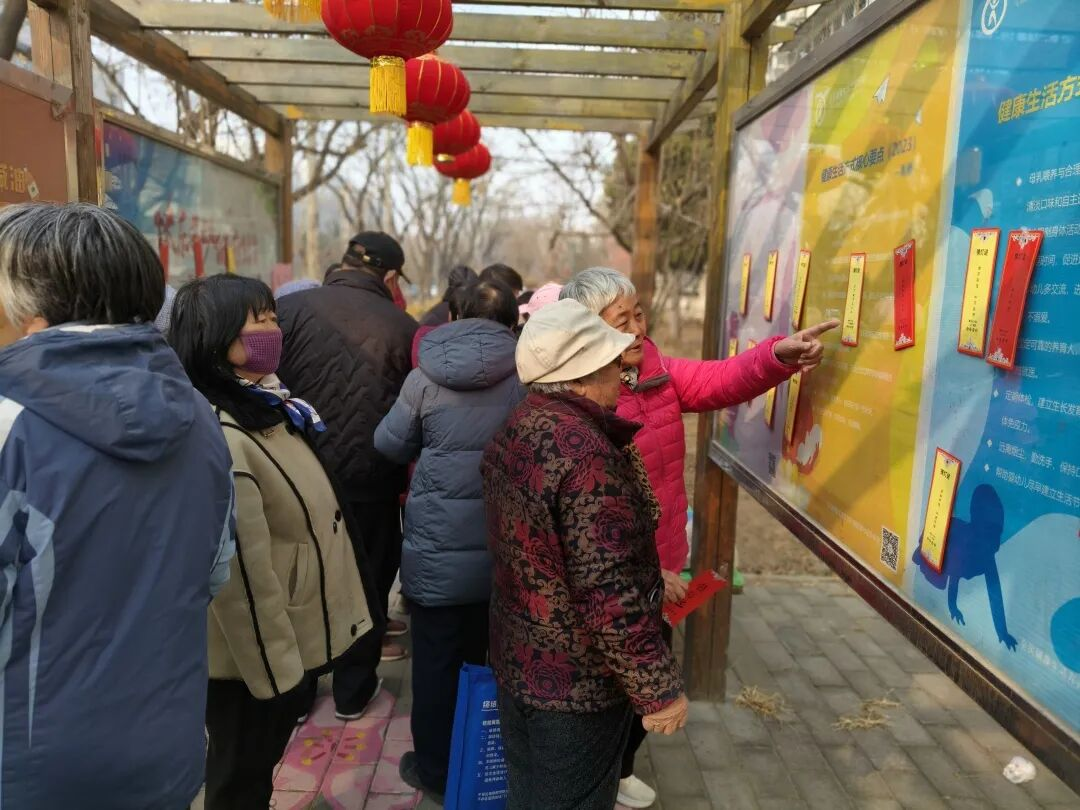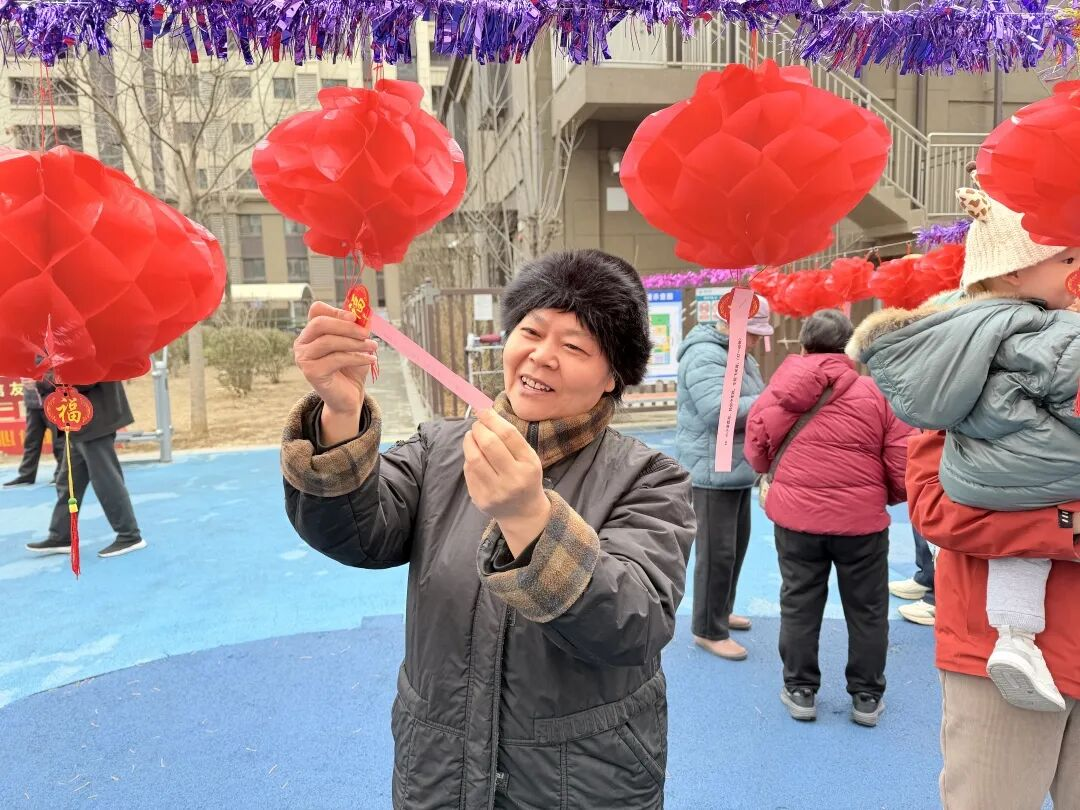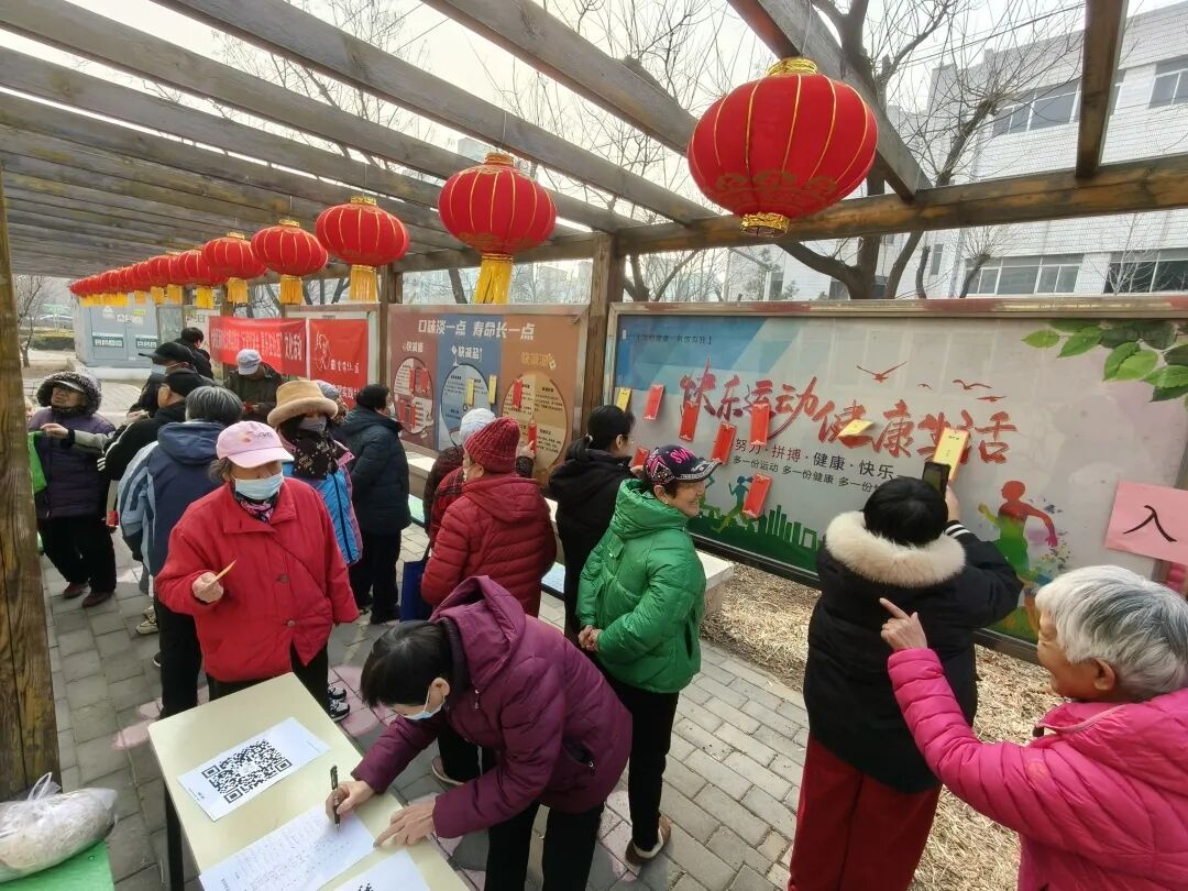 府前社区活动现场红灯笼高挂,氛围喜庆,社区主任崔彩军向居民送上节日祝福,宣传社区重点工作并着重强调“一盔一带”等交通安全注意事项。趣味猜谜环节中,内容丰富的灯谜吸引居民踊跃参与、互帮互助,猜中者可兑换香油等实用礼品,现场欢声笑语不断。
