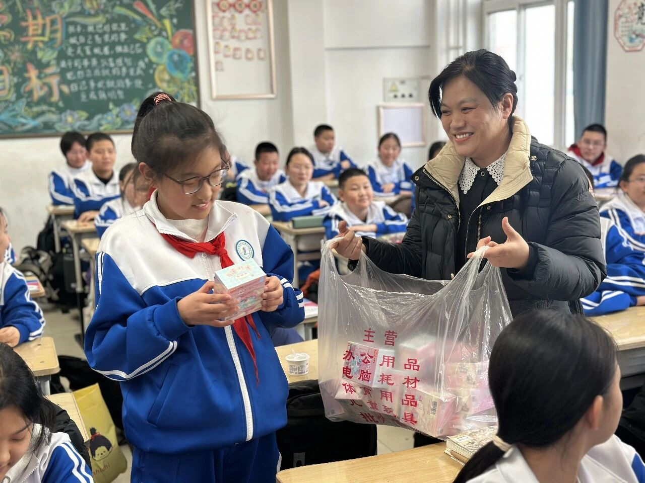 为加深理解、巩固学习效果,宣传片播放后开展了有奖知识问答。同学们踊跃举手、积极抢答,在轻松互动的氛围中加深了对“扫黄打非”知识的掌握。社区为答对问题的同学准备了青少年喜爱的盲盒作为奖品,现场气氛热烈。