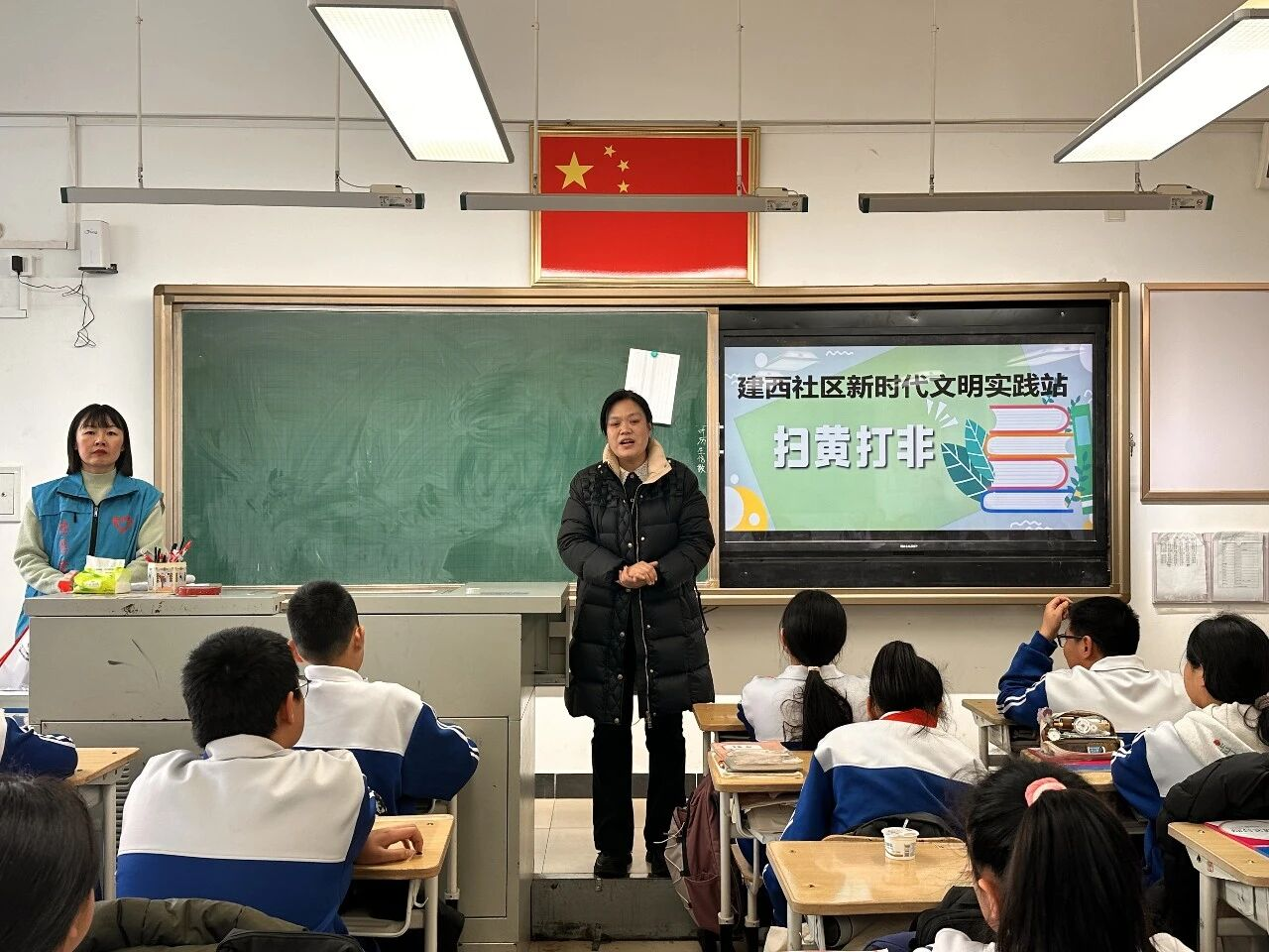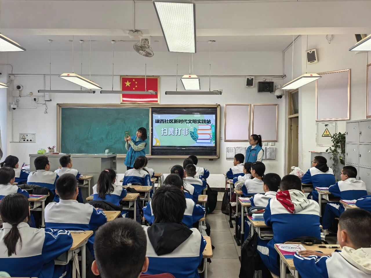 活动现场,社区工作人员播放了“扫黄打非”动漫宣传片,用生动形象、通俗易懂的动画形式,向同学们讲解什么是非法出版物、如何辨别不良信息、怎样安全文明上网等内容,并清晰介绍“扫黄打非”举报电话与举报网址,引导大家主动抵制文化垃圾、积极参与监督。