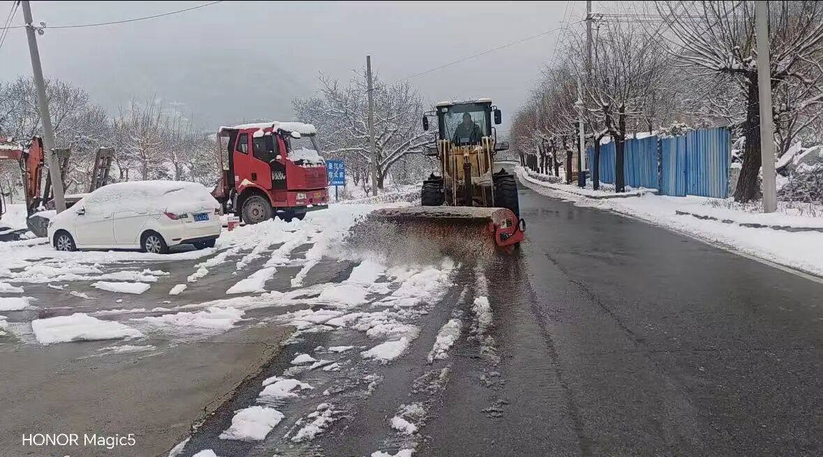 在镇域主干道上,大型机械设备轰鸣作响,高效运转,对积雪进行集中清理和铲除,确保了主要交通动脉的畅通无阻。人工与机械的紧密配合,大大提升了扫雪铲冰的效率,为车辆和行人开辟出一条条“安全通道”。