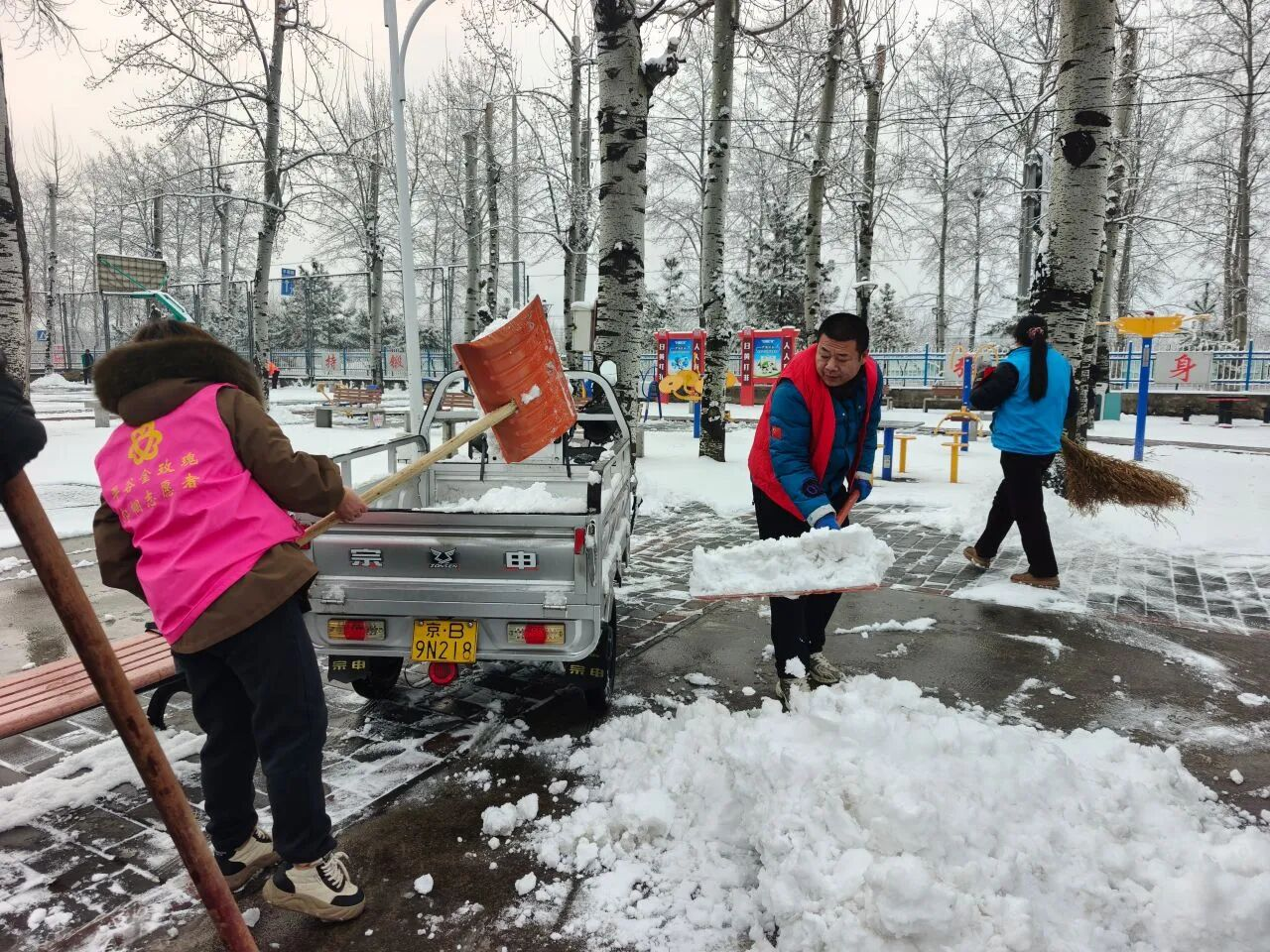 镇机关干部带头对镇政府及周边环境开展集中清理,以整洁环境展现良好风貌。各村同步响应、全面行动,村干部、网格员、保洁员、巾帼志愿者、防火队伍等多方力量闻令而动、协同作战,重点对村内主干道、街巷路口、活动广场等区域开展积雪清扫,做到不留死角、不漏盲区,确保主次干道畅通、重点区域干净、群众出行安全便捷。风雪中,一抹抹忙碌的身影成为最动人的风景线。