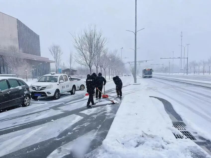 镇党委书记于清德,镇党委委员、副镇长刘志杰第一时间指挥调度、靠前部署,统筹镇生态环境办、公路养护站、环境秩序队等力量迅速奔赴一线。聚焦镇中心区主次干道、国际会展中心周边等关键区域,全面开展精细化清雪除冰。工作人员不畏严寒、连续作战,优先打通交通要道、及时消除路面隐患、全力保障道路通行安全,为新春第一会营造安全、畅通、整洁、有序的良好环境。