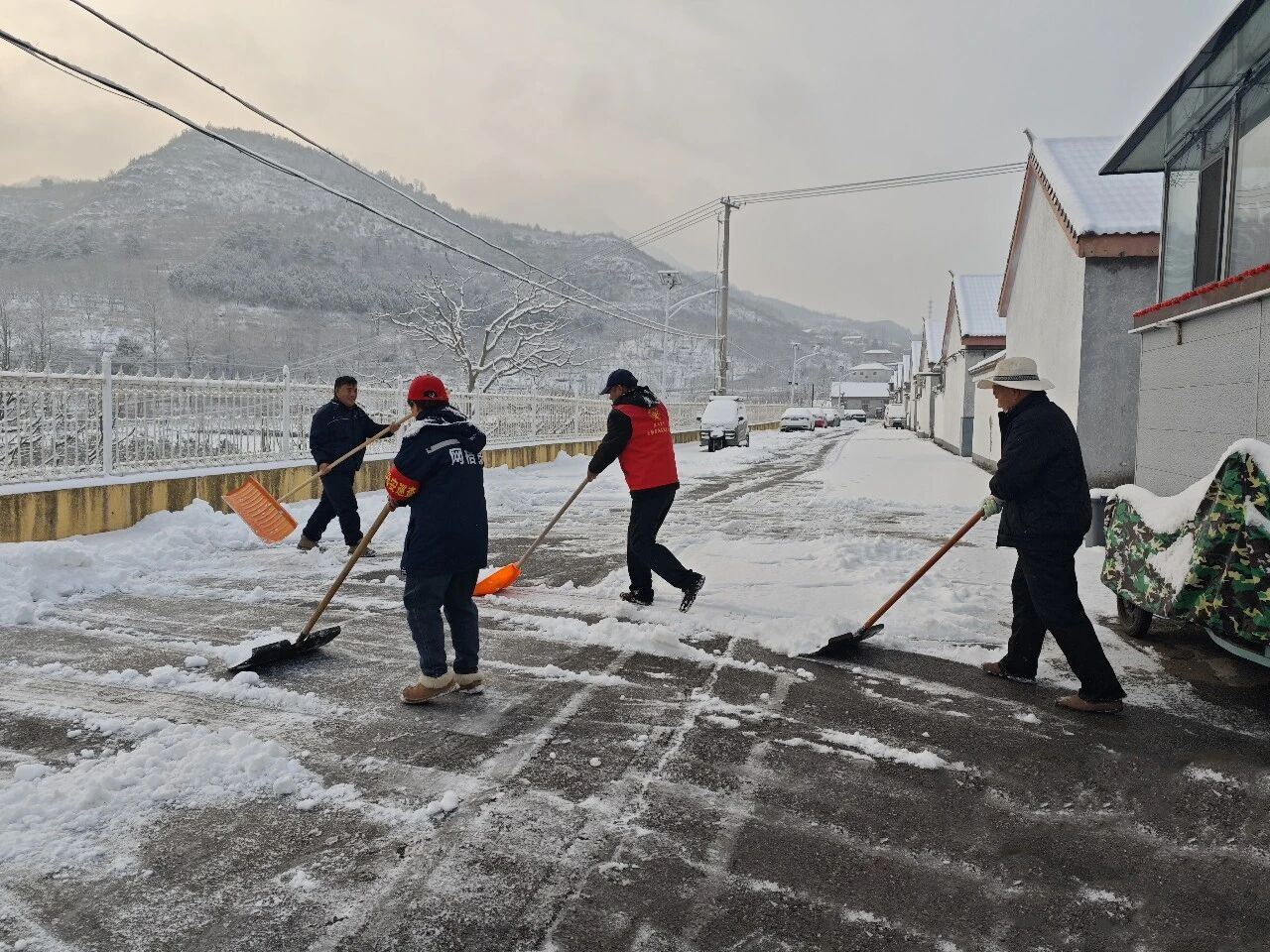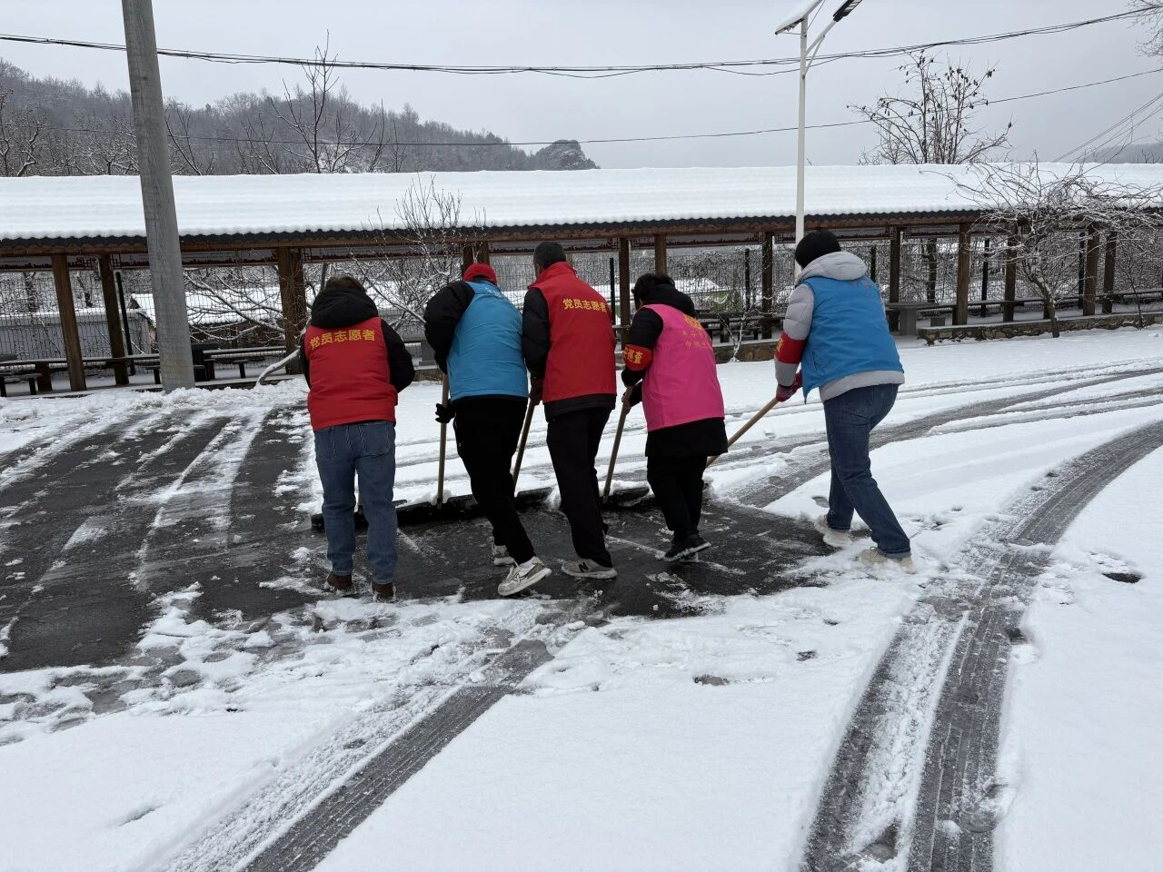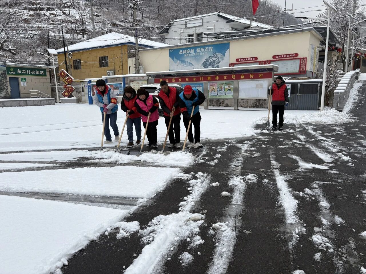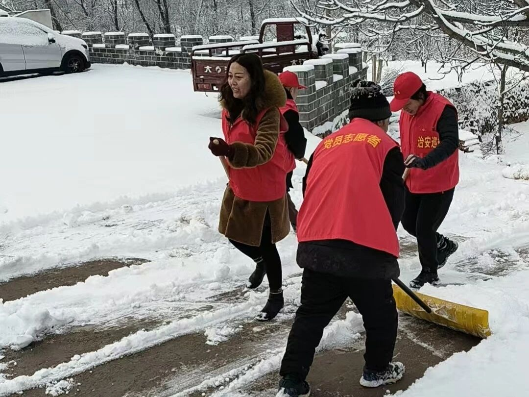 各村群众积极响应、主动参与,自觉落实“门前三包”,自发清理房前屋后和巷道积雪。大家分工协作、干劲十足。青年志愿者组成暖心服务小队,为独居老人、行动不便群众清扫院落积雪,排查安全隐患,叮嘱防寒保暖与用气用电安全,把温暖送到群众心坎上。