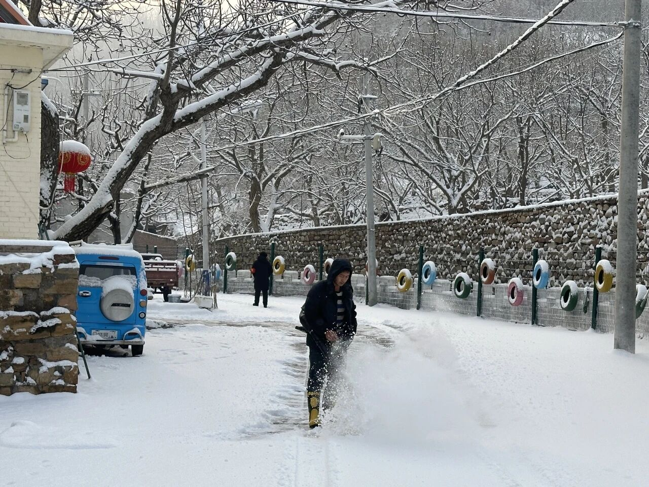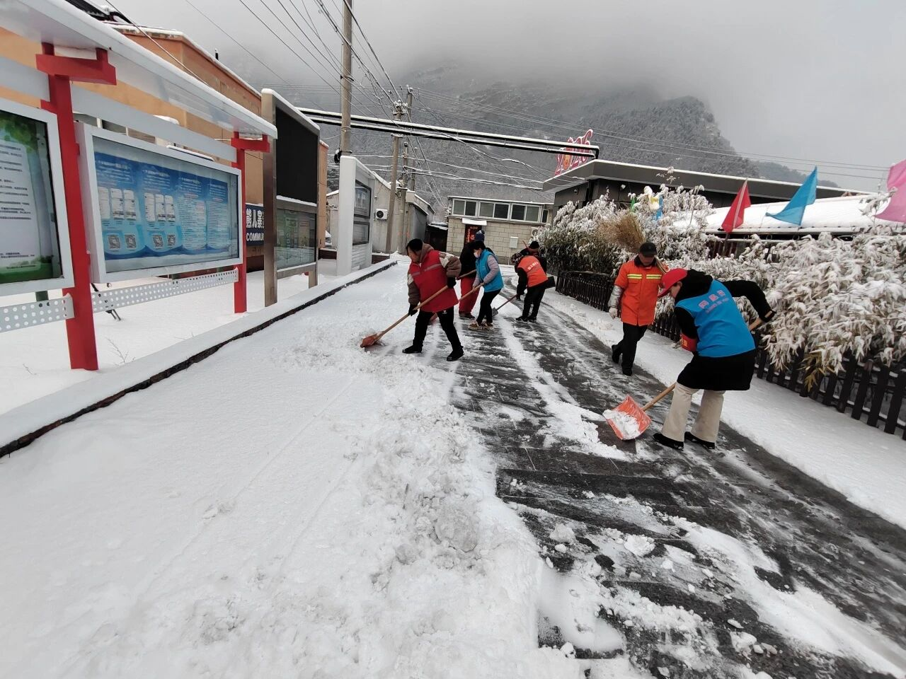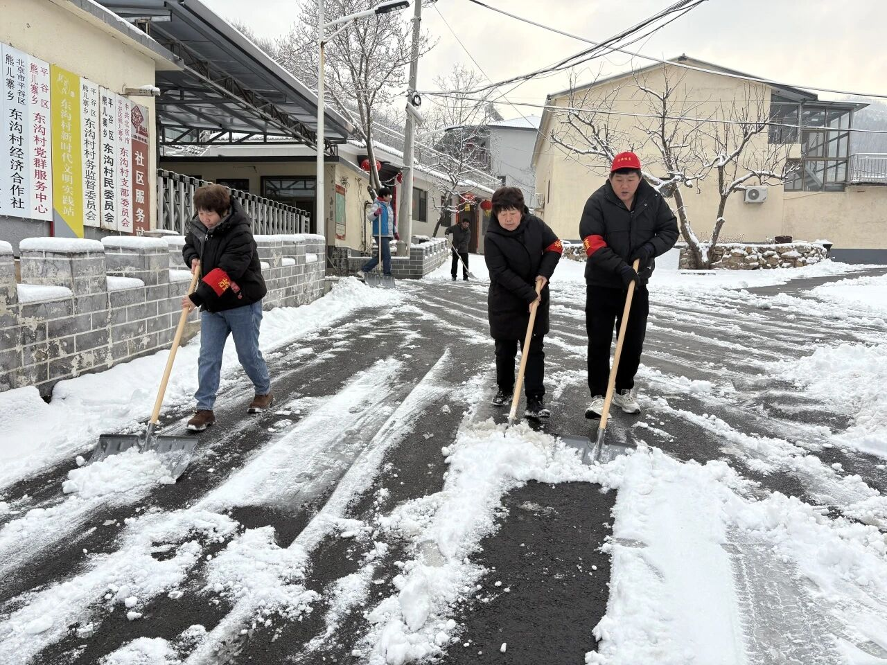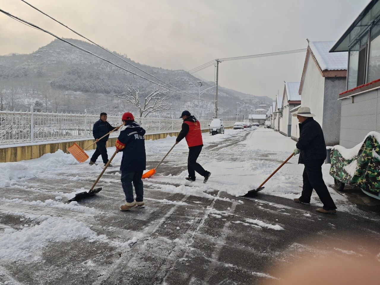 各村群众积极响应、主动参与,自觉落实“门前三包”,自发清理房前屋后和巷道积雪。大家分工协作、干劲十足。青年志愿者组成暖心服务小队,为独居老人、行动不便群众清扫院落积雪,排查安全隐患,叮嘱防寒保暖与用气用电安全,把温暖送到群众心坎上。