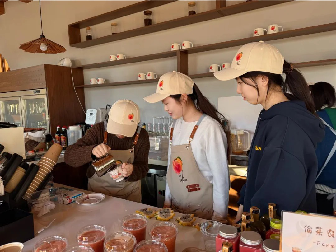 在企业实践的一线阵地,田间车间解锁助农新技能,学子们的脚步遍布田间地头与包装车间,走进樱桃种植大棚,细心修剪果枝、筛选分拣果实,将专业知识转化为助力特色农产品提质增效的实际行动;在农场咖啡实践岗位上,学子们走进工坊参与咖啡研磨、冲泡等制作环节。