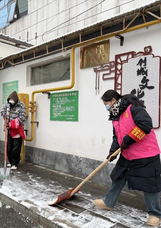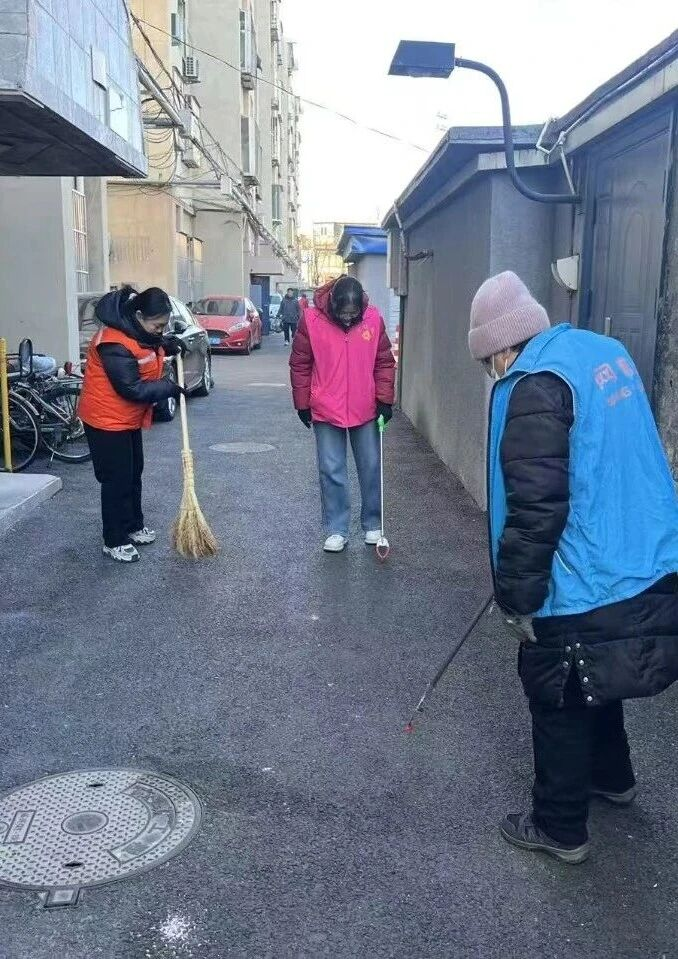 在环境整治一线,志愿者们分工协作、干劲十足,手持扫帚、夹子、垃圾袋等工具,对辖区主干道、绿化带、楼道死角等区域进行“拉网式”清理,细致捡拾白色垃圾、枯枝落叶、烟头杂物,铲除墙面小广告,擦拭宣传栏与健身器材,不放过任何卫生盲区,用双手扮靓家园,让辖区环境焕然一新,同时向居民宣传环保与文明公约,倡导人人参与、共建共享的良好氛围。针对降雪天气,志愿者们迅速行动开展扫雪铲冰作业,清理主干道路、主要路口积雪,保障居民出行安全,用实干诠释责任与担当。