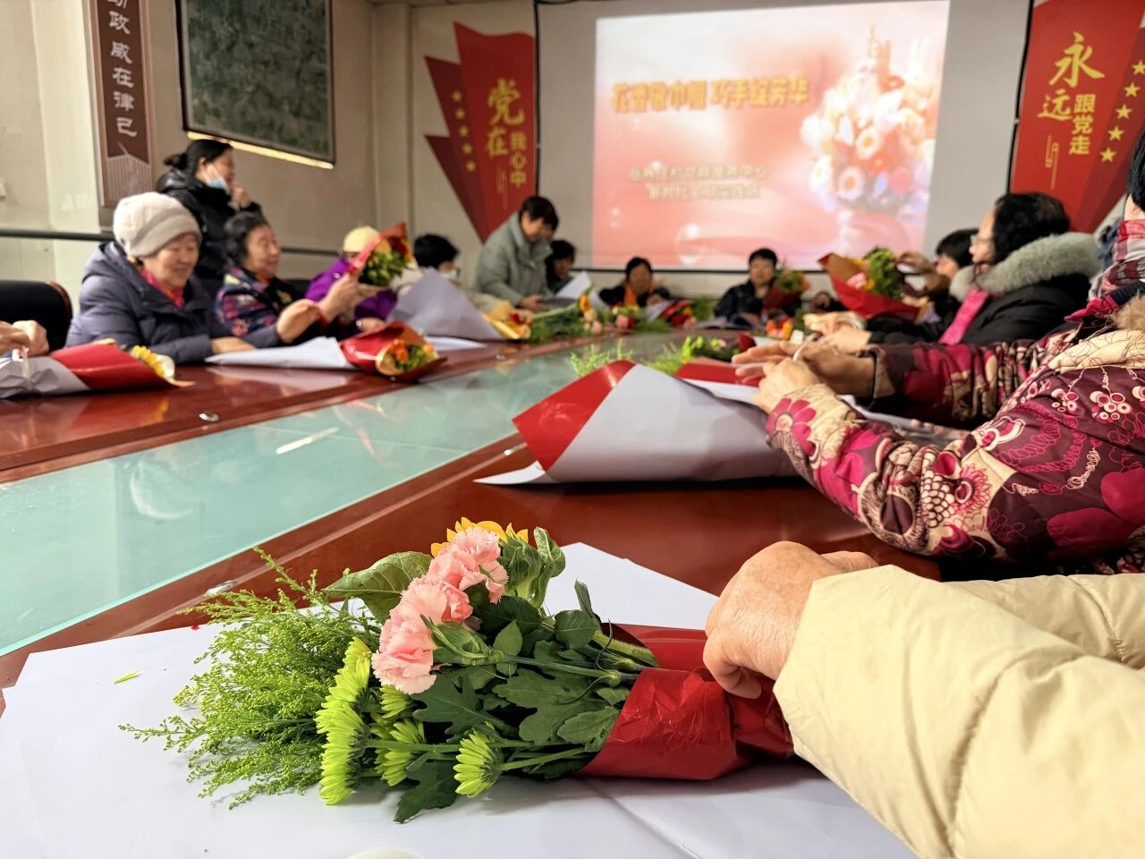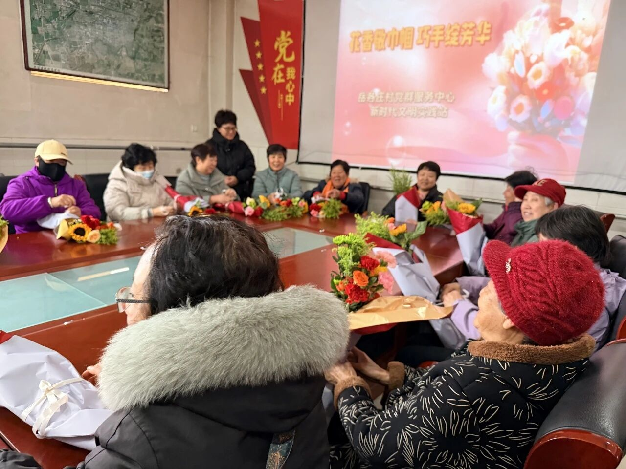 为庆祝“三八”国际妇女节,丰富辖区女性村民精神文化生活,岳各庄村委会精心组织开展了“花香敬巾帼 巧手绽芳华”主题花艺手工活动。