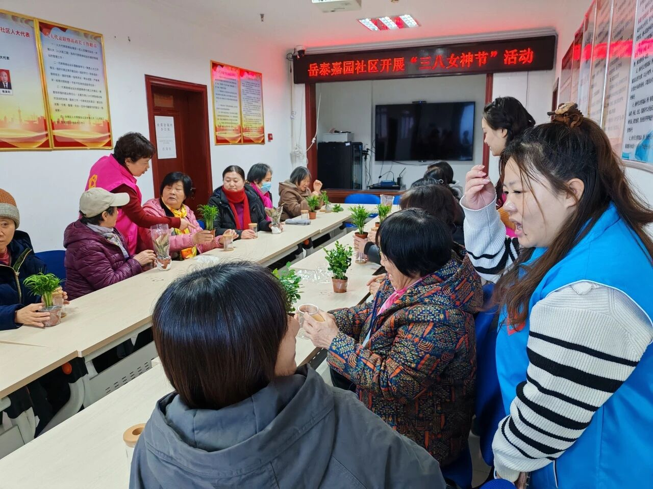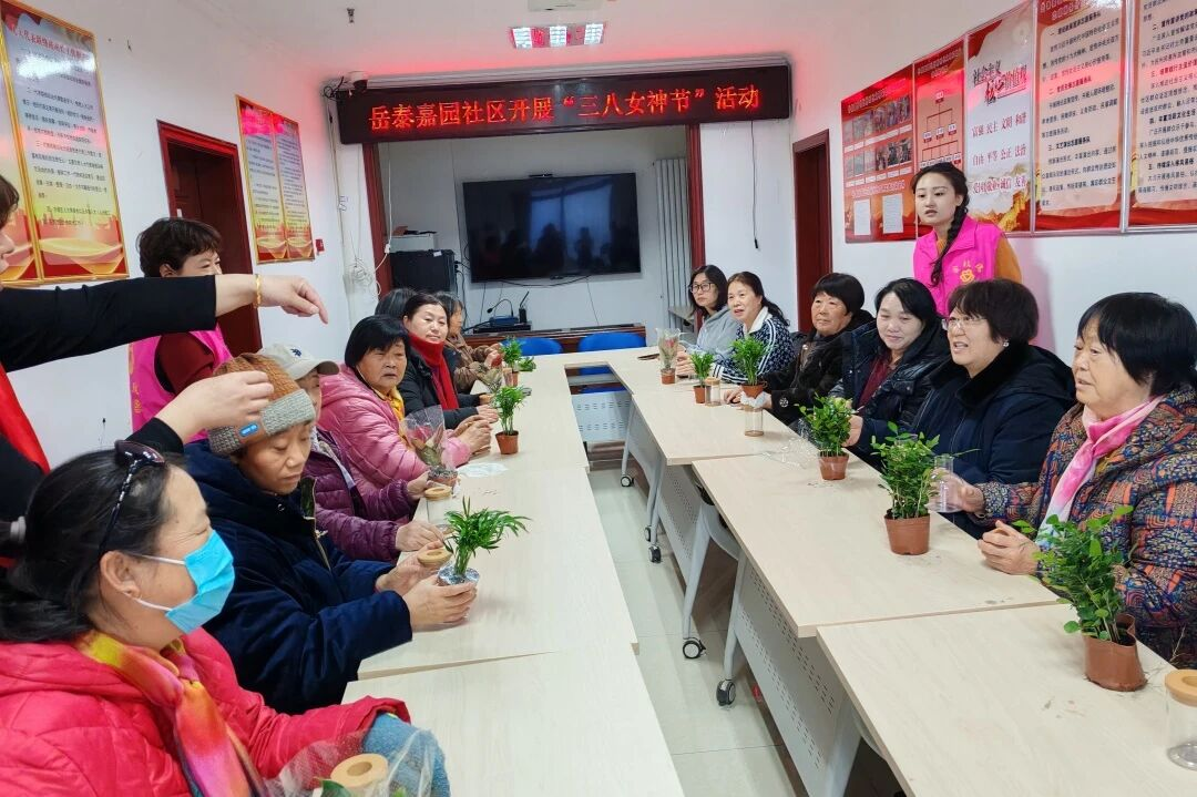 为了展示社区女性风采,丰富女性的精神文化生活,拉进居民与社区之间的距离,在三八女神节到来之际,岳泰嘉园社区开展“庆三八”妇女节盆栽制作活动。