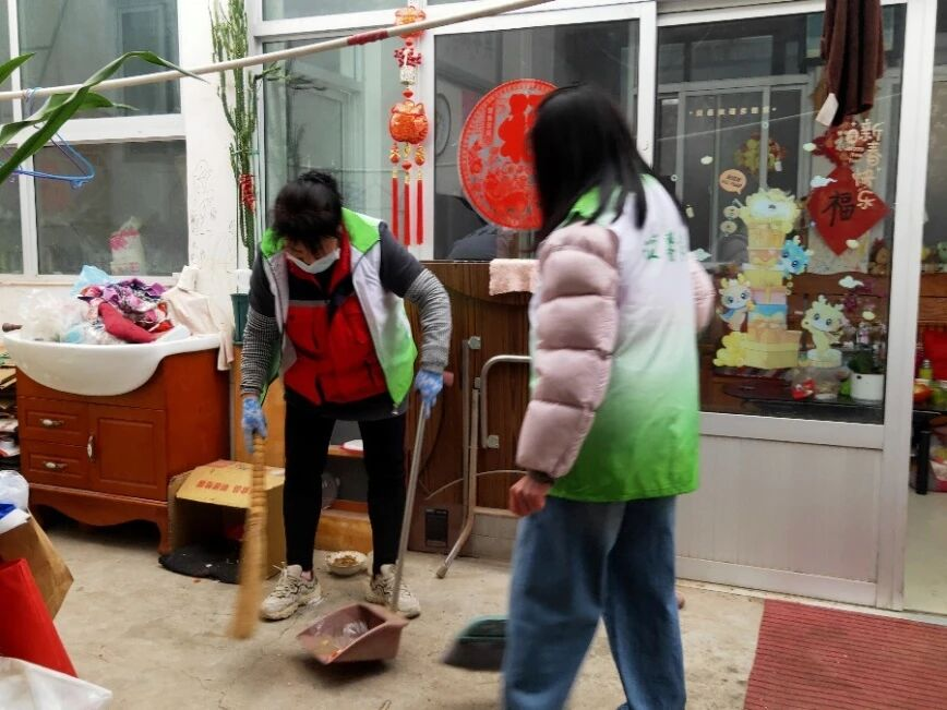 平谷镇第一温馨家园则开展了街道环境和残疾人家庭卫生清扫志愿服务活动,将学雷锋与助残服务、家园美化紧密结合。活动中,志愿者们携带扫帚、抹布、垃圾夹等工具,分成两组有序开展服务。一组志愿者对辖区主次干道、绿化带、公共区域进行细致清扫,清理积雪、捡拾杂物、铲除卫生死角与小广告,全力改善社区公共环境,营造整洁有序的居住氛围;另一组志愿者深入行动不便、独居残疾人家庭,上门开展居家清洁服务,认真打扫地面、擦拭门窗、整理家具、清理杂物,帮助残疾人家庭改善居住条件。忙碌之余,志愿者们与残疾人朋友亲切交谈,详细了解生活状况与实际需求,叮嘱注意居家安全与健康,用贴心服务传递温暖与关怀。经过共同努力,辖区街道面貌焕然一新,残疾人家庭环境整洁有序,得到了居民与残疾人朋友的一致认可与好评。