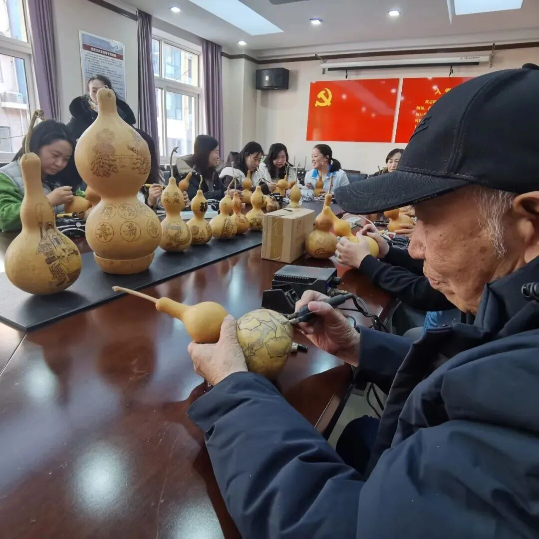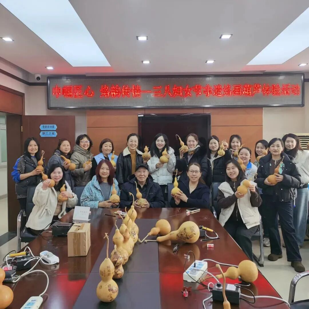 活动中,大家在非遗传承人的指导下,了解烙画葫芦的历史渊源与技艺要点,以烙铁为笔、以葫芦为纸,精心勾勒、细致烙绘。葫芦谐音“福禄”,大家将吉祥纹样、美好祝福烙于葫芦之上,既寄托巧手绘福禄、巾帼绽芳华的美好心愿,也传递对幸福生活的向往。