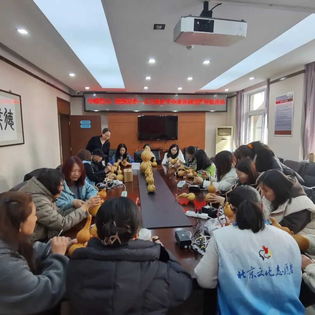 为庆祝“三八”国际劳动妇女节,传承弘扬非物质文化遗产,平谷区文化馆举办“巾帼匠心 烙韵传情——三八妇女节非遗烙画葫芦体验活动”,全馆女性职工参与,在指尖非遗中感受传统文化魅力,共庆美好节日。