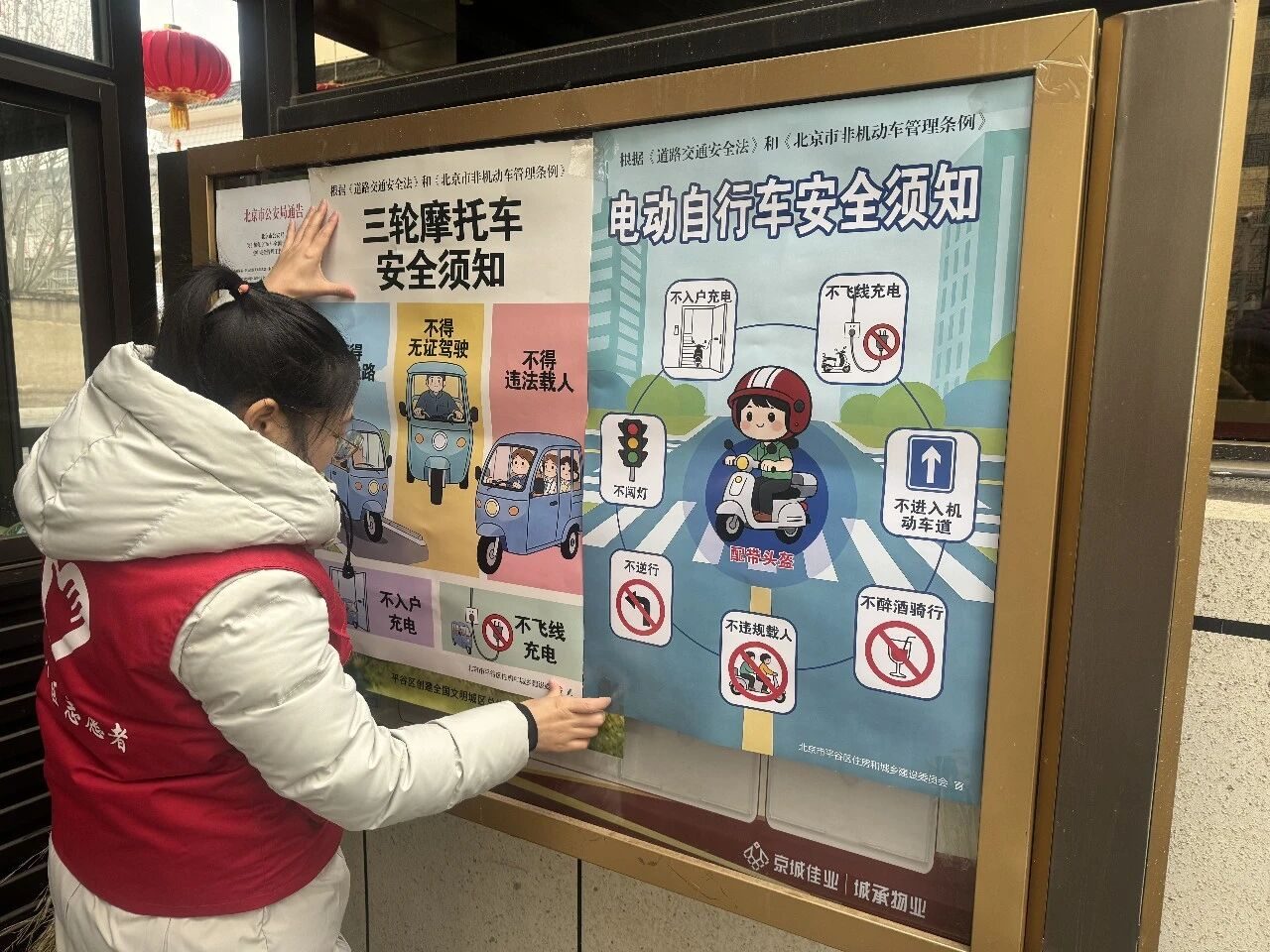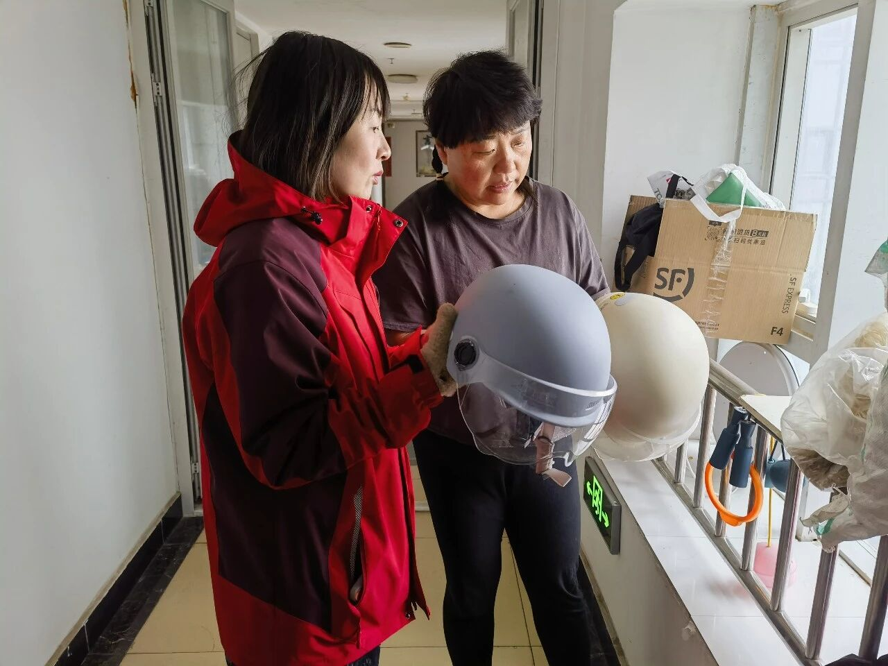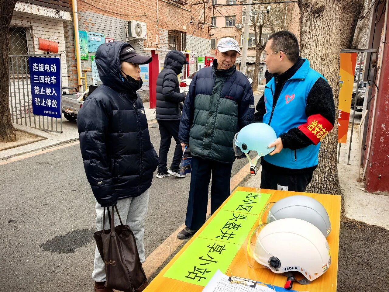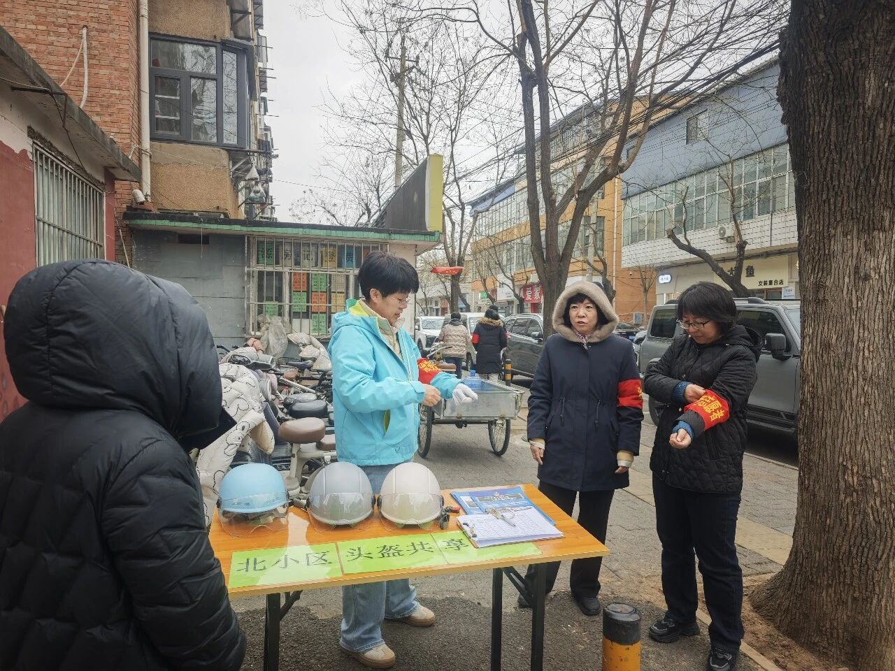 北小区设立“头盔共享小站”,摆放多种规格头盔供居民免费登记借用,解决了居民骑行时因疏忽或携带不便未佩戴头盔的安全隐患,该举措获居民广泛好评;同时小区通过网格群、宣传栏、志愿者劝导等方式加强“一盔一带”宣传教育,既体现了对居民安全的关心,也倡导了文明出行理念,让安全出行理念深入人心,营造了安全有序的小区交通环境。