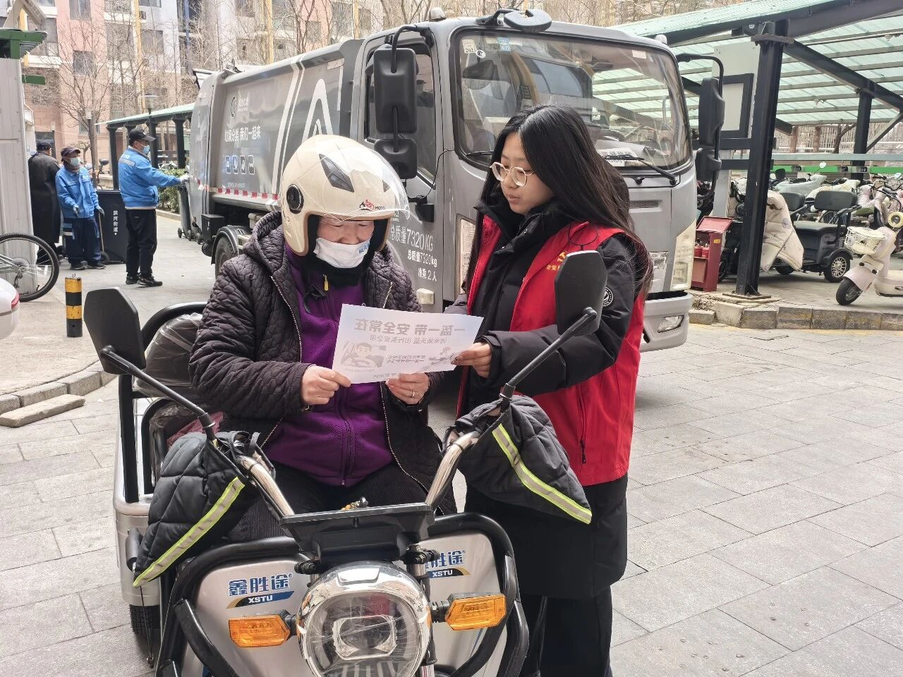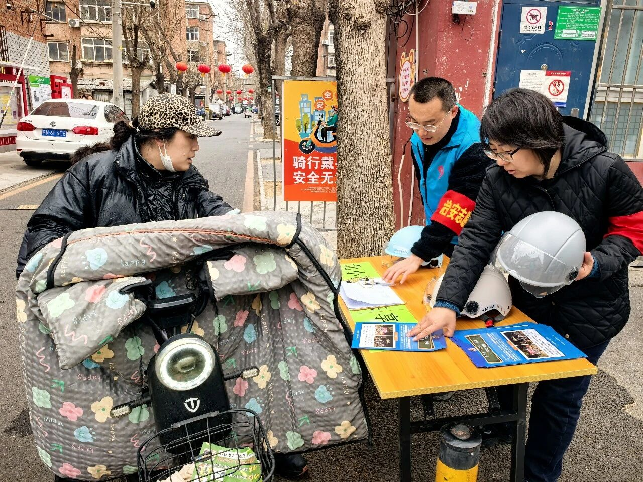 府前社区开展“一盔一带”主题交通安全宣传活动,工作人员通过面对面讲解,向居民普及电动车正确佩戴头盔的方法、选购合格头盔需认准CCC认证等安全知识,并发放宣传页和倡议书,引导居民摒弃交通陋习、文明出行,切实守护居民出行平安,营造安全文明有序的社区交通环境。