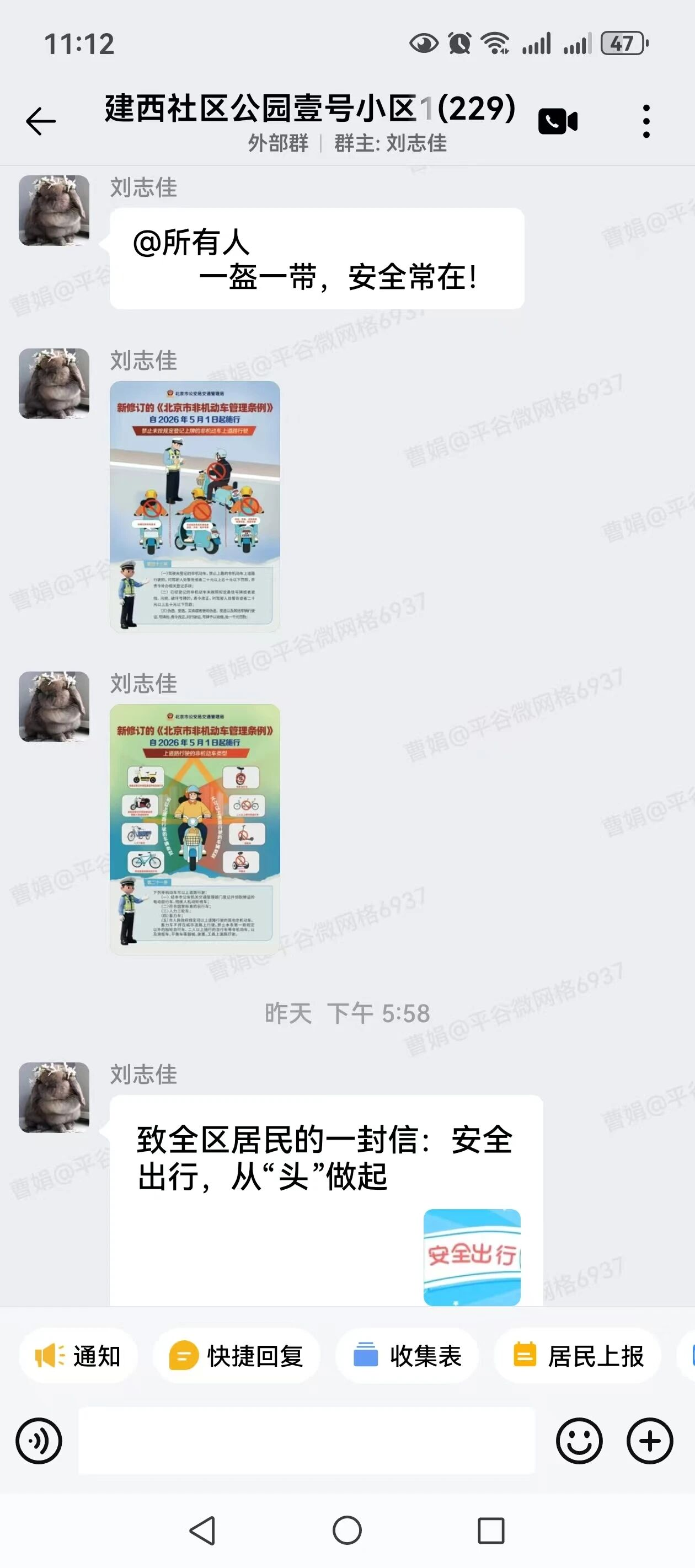 建西社区采取“线上+线下”双轨并行模式,开展“一盔一带”安全守护宣传活动。线下通过设置宣传点位、发放资料、以案说法、张贴海报、入户走访等方式,面向辖区居民尤其是老年人、接送孩子家长等群体开展全覆盖宣传;线上依托网格群、业主群推送科普知识、法规要点和警示案例,扩大宣传覆盖面。此次活动通过多种举措,将文明交通理念传递到千家万户,切实增强居民交通安全意识。